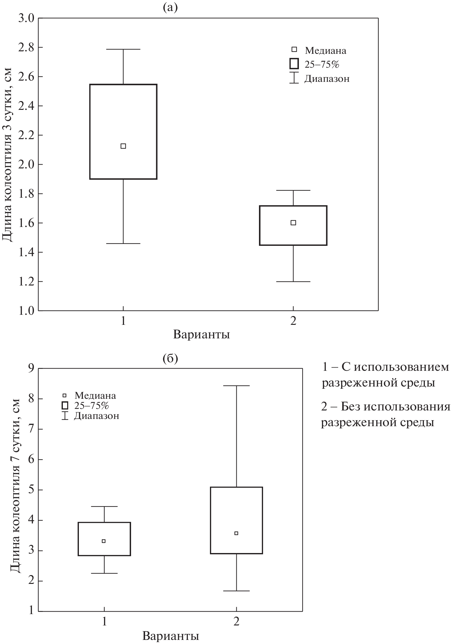 The effect of pre-sowing treatment of spring wheat seeds (Triticum aestivum L.) with succinic and salicylic acids at concentrations of 10–5 M and 10–3 M with and without the use of a vacuum infiltrator was studied. The obtained results showed a positive effect of seed treatment under conditions of rarefied pressure (0.9 atm, 15 min) on the development of coleoptile and seedling root on the 7th day of germination. On day 3 (when determining the germination energy), the effect of a rarefied medium did not reveal a significant effect. Under stressful conditions of plant development with hyperthermia, it was found that treatment of seeds with salicylic acid at a concentration of 10–3 M in a rarefied environment provided the best result in reducing stress load by suppressing catalase activity. Succinic acid at a concentration of 10–5 M proved to be the best option as a growth enhancer. Together with the use of a rarefied medium, such treatment most significantly accelerated the development of the coleoptile and the root of the seedling on the 7th day of germination.