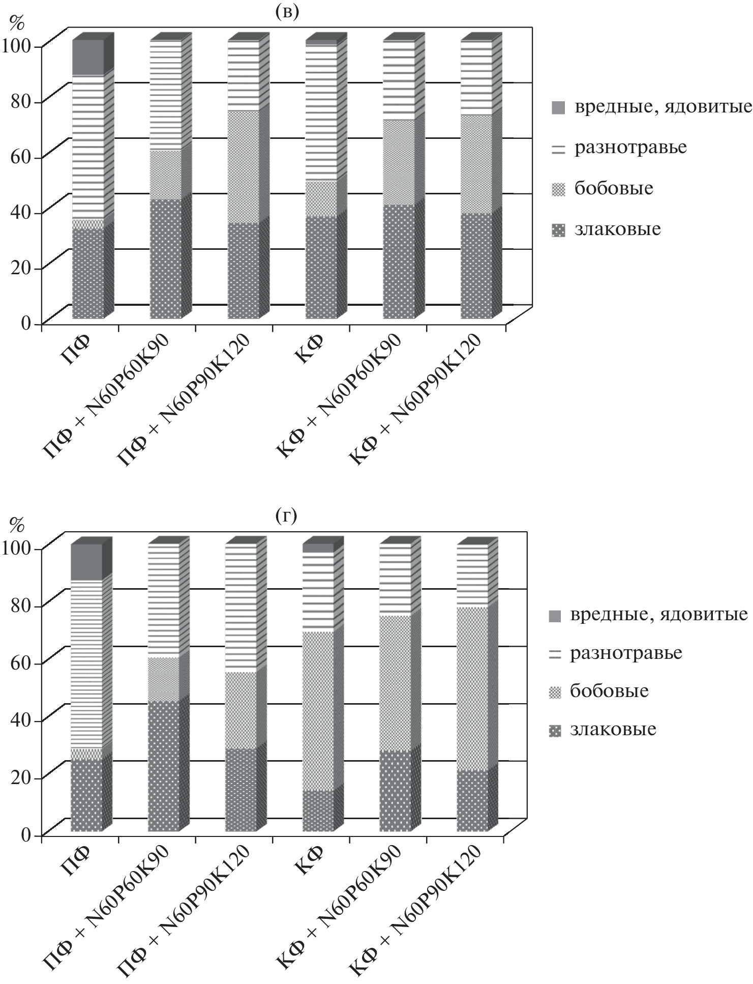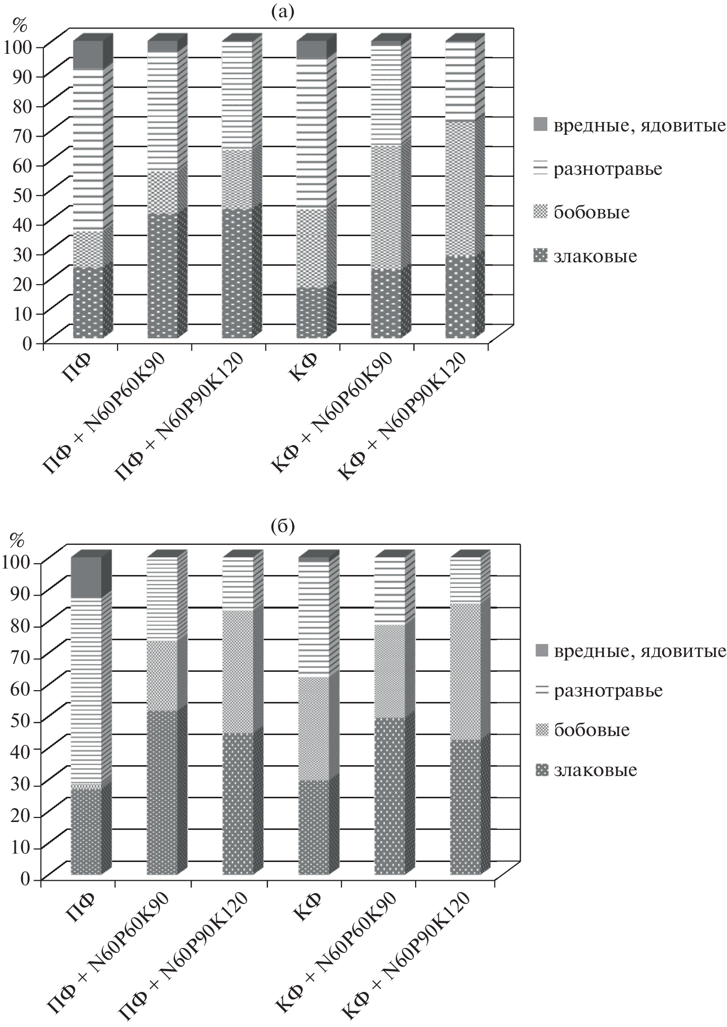 Приведены результаты 5-летнего исследования изменения ботанического состава сеяных и природных травостоев, свойств почвы в зависимости от примененных агроприемов, которые включали прямой сев трав в дернину выработанного торфяника и применение минеральных удобрений. Внесение минеральных удобрений способствовало обогащению почвы доступными питательными веществами, что позволило повысить продуктивность трав в сочетании с подсевом в 2.0–4.7 раза, улучшить их качество за счет оптимизации ботанического состава травостоя. Установлено, что применение минеральных удобрений в дозах N60Р60K90 и N60Р90K120 в вариантах с природным и культурным фитоценозами обеспечивало увеличение доли ценных бобовых и злаковых трав, снижая долю разнотравья с 53 до 25–34%.