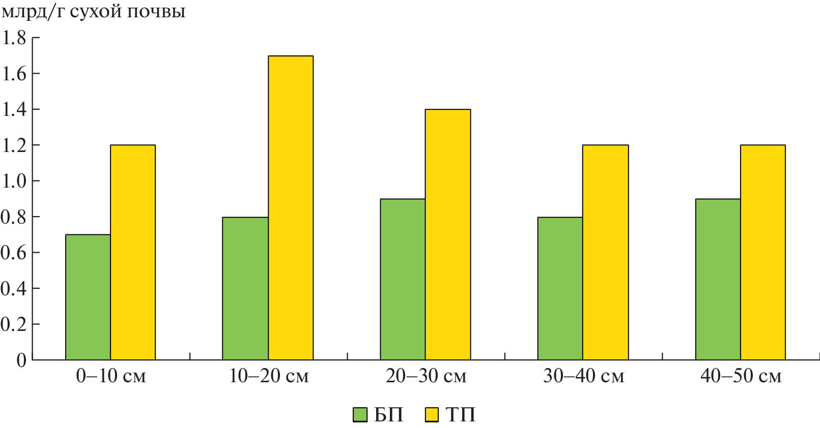 The microbial communities in soils of cryomorphoses in the south of the Vitim Plateau have been studied. The objects of study were gley cryoturbated chernozems and humus-quasi-gley carbonated soils. In the course of the study, experimental sites with pronounced cryogenic phenomena were selected. The intensity of microbiological activity was determined by the carbon content of microbial biomass, the number of microorganisms in the dominant groups of microbial communities. Determination of the number of microorganisms in soils was carried out by direct microscopy, which makes it possible to carry out a more accurate count of bacteria in the soil, taking into account adsorbed cells. Cells were preliminarily desorbed on an ultrasonic disperser. The carbon of microbial biomass was determined by the rehydration method. Data were obtained characterizing the direction and intensity of microbiological processes along the horizons of soil profiles of heaving mounds and thermokarst depressions. The number of microorganisms and the dominant groups of bacterial communities of soils formed under the conditions of the ultracontinental climate of Buryatia and relatively close-lying permafrost are presented. It was revealed that bacterial microflora predominates in the soils of heaving mounds and thermokarst depressions. The intra-profile heterogeneity in the distribution of soil microorganisms indicates that, as a habitat, the soil is strongly differentiated in all directions. This differentiation along the vertical of heaving mound and thermokarst depression was reflected in the concept of soil horizons as special ecological niches and the possibility of using microbiological indications of heaving and subsidence occurring during heaving.