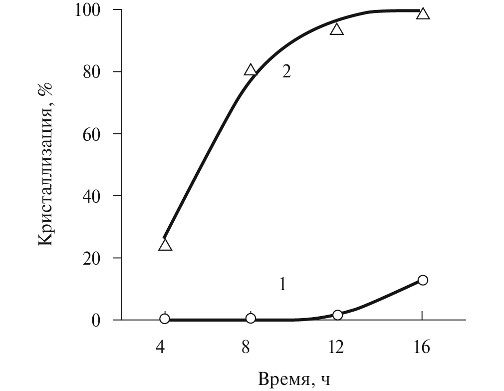 В случае задержки применения рабочего раствора на культуре биологическая активность гербицидов группы бетаналов на сорный компонент снижалась вследствие кристаллизации действующих веществ. Аналогичные процессы проходили и на листьях растений после внесения раствора гербицида [5]. Особенно это касалось растворов бетаналов-дженериков, образование и рост кристаллов которых проходили быстрее, чем в растворе БЭОФ. При нарастании величины кристаллов возрастало время подавления сорняков, уменьшалась эффективность действия препарата (рис. 4).