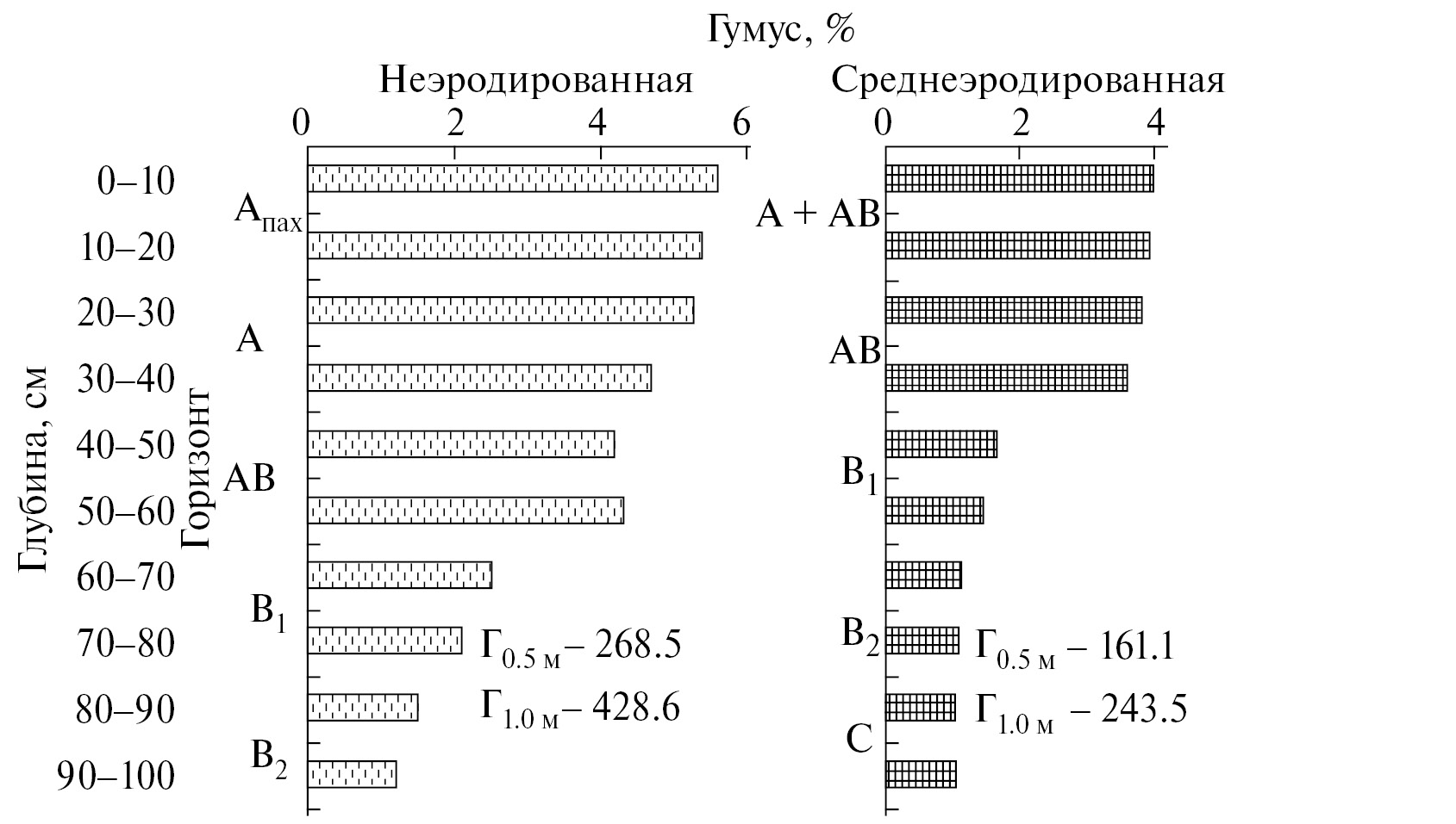 Г0.5 м и Г1.0 м – запасы гумуса в слоях 0.5 и 1.0 м, т/га.