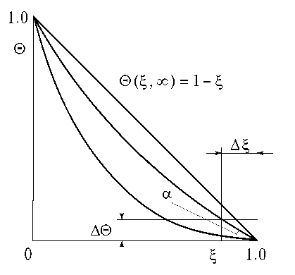 Используя соотношение (169), путем изменения числа приближений n, можно найти такое , чтобы скорости и совпадали. После определения получение последующих приближений представляется нецелесообразным, так как получаемое решение для безразмерной температуры вида (170), приближаясь к точному аналитическому решению параболического уравнения теплопроводности, как уже указывалось выше, не может быть использовано при сверхмалых значениях времени.