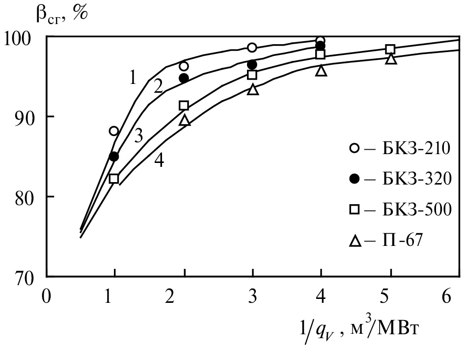 qv | – теплонапряжение топочного объема, МВт/м3 |