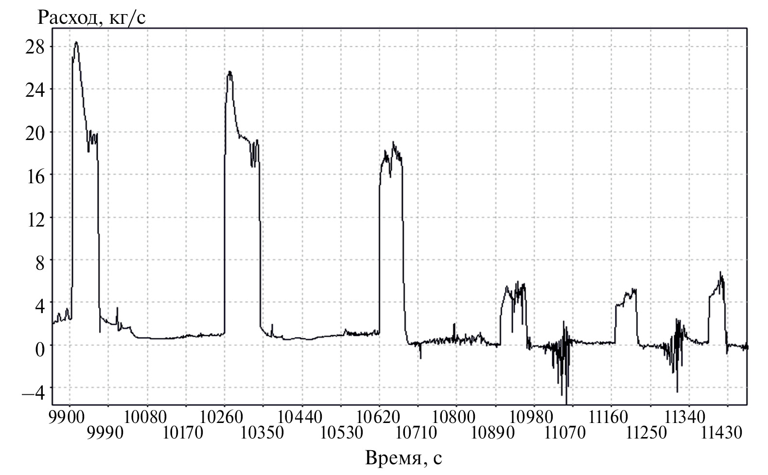 Рис. 2. Зависимость расхода на входе в горячую нитку от времени