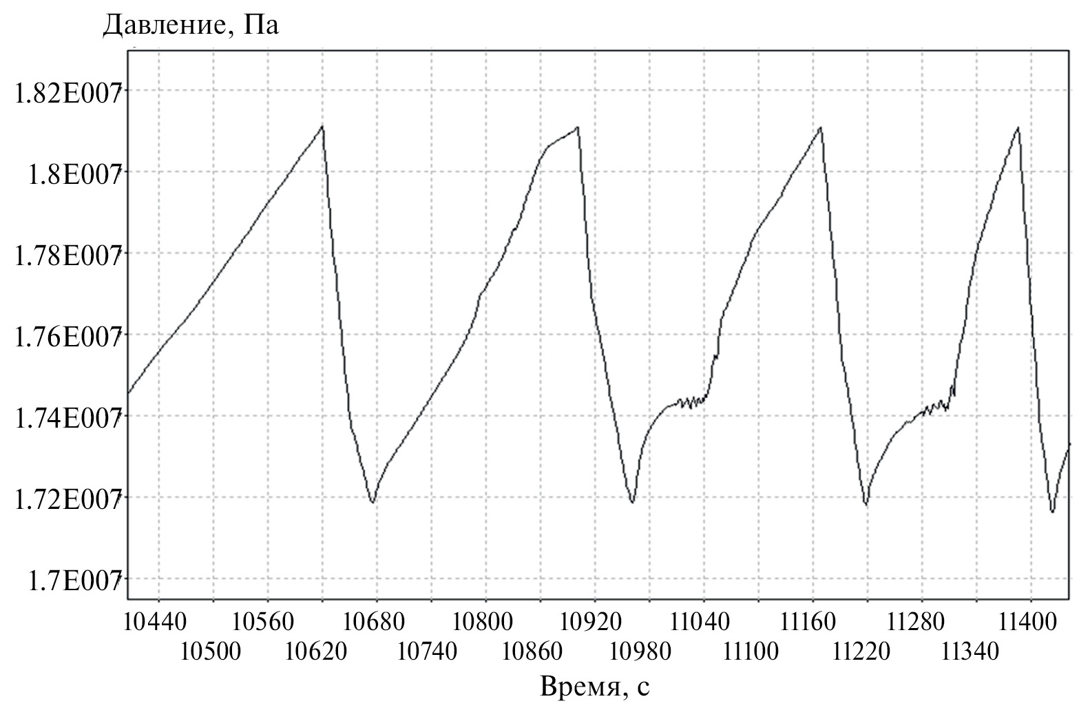 Рис. 3. Зависимость давления в горячей нитке от времени