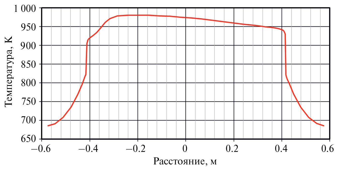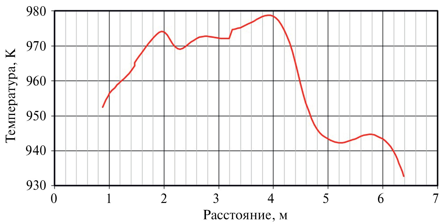 Рис. 10. Профиль температуры вдоль линии “а” (2500 с расчета)
