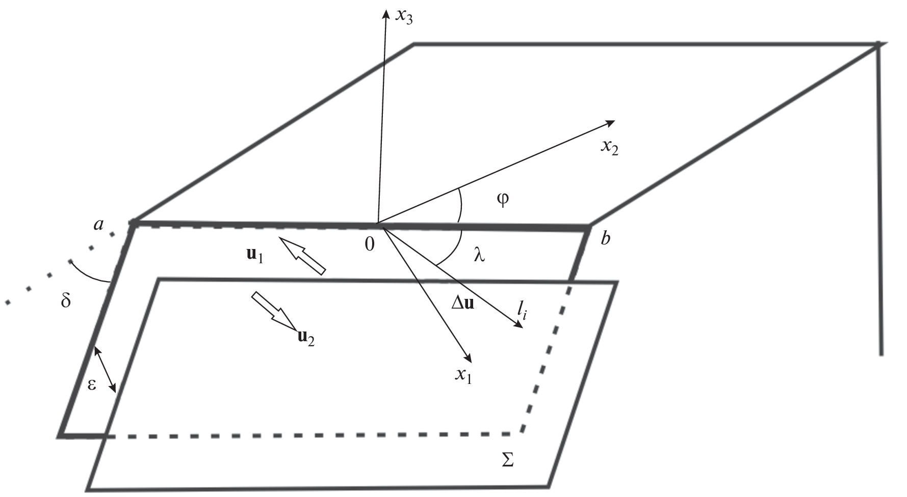 During the construction of strategic facilities, micro zoning is required to determine the peak values of terrain acceleration due to possible earthquakes. The acceleration of the soil in this case strongly depends not only on the power of the earthquake, but also on the earthquake source mechanism and the geodynamic state of the terrain. The known dislocation models of a single dipole with a moment and a pair of dipoles without a moment of the earthquake source mechanism satisfactorily describe the observed effects of the quadrant stress distribution on the Earth’s surface during earthquakes. When carrying out calculations within the framework of the theory of elasticity, the actions of the dipoles are expressed through volumetric forces. There are two known models of replacing the moments with equivalent forces: one of them is based on the equilibrium equations for an infinitely elastic space (Landau and Lifshitz,1965; Maruyama,1963), and the other is based on the representation theorem for elastic bodies, by introducing a singular internal volume, at the boundary of which there are dislocations (Vvedenskaya, 1969; Aki and Richards, 1983). Although these models involve moment effects, they themselves are derived from the momentless theory of elasticity. In our work, we propose a double dipole effect without a moment based on the moment theory of elasticity. The proposed model of the earthquake source mechanism is applied to solve the problem of stress variations in the Earth’s crust in Central Asia using the example of a particular earthquake with a simplified orientation of the rupture plane. Stress variation is understood as the difference in stresses in problems with and without an earthquake mechanism. Static stresses are obtained by solving the inverse elasticity problem with partially unknown boundary conditions. The lithosphere is a prismatic body consisting of several homogeneous blocks, the upper surfaces of which correspond to the relief of Central Asia. Verification of the results of the numerical solution is carried out by comparing the obtained stresses with previously established empirical values. As a priori stresses for solving the inverse problem, we used the solution of the elastic plane problem, the boundary conditions in which correspond to the lateral compression of the lithosphere of the region of the Indian and Arabian plates on the one hand, and the Eurasian plate on the other hand. The obtained solutions of the problem were used to analyze the geodynamic state of Central Asia. Based on the results of laboratory experiments, the unambiguity of the conclusions about the geodynamic state of the Earth’s crust (compression, extension) according to the Lode-Nadai coefficient, which are currently used by many researchers, is questioned. It is shown, contrary to earlier statements, that the values μσ = +1 and μσ = –1 can correspond simultaneously to both tension and compression cases, depending on the spatial form (ellipsoid) of the stress state. Geodynamic analysis of the Earth’s crust is carried out according to the Anderson method.