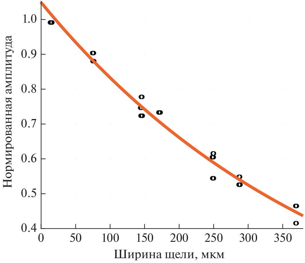 The results of laboratory experiments on concurrent active acoustic and deformation monitoring of a hydraulic fracture are presented. The experiments were carried out in a model material based on gypsum. For comparison, reference experiments were carried out to study ultrasonic waves propagation through a liquid-filled gap of controlled width between two precision glass plates. The purpose of the experiments was to study the dependence of the amplitude of the ultrasonic wave passing through the crack on the magnitude of its opening. In these experiments, a circular hydraulic fracture was created, the plane of which was perpendicular to the axis of the cylindrical sample. A cased injection well was located along the same axis, ending at the middle of its height. The sample was placed between two aluminum alloy disks equipped with piezoceramic transducers built into them, operating both in the emitter and receiver modes. Through the channel in the lower disk, the working fluid was supplied to the fracture. The sample was saturated with pore fluid through the upper disk. The entire assembly was placed in a hydraulic press providing a constant compressive force. The crack opening value varied depending on the flow rate of the fluid supplied to the center of the crack and was measured by the relative change in the distance between the disks of the assembly using inductive displacement transducers. Experiments were also carried out simulating a fracture filled with proppant. In this case, the crack aperture varied depending on the applied vertical force on the sample. Based on the results of experiments carried out under various conditions, the dependences of the amplitude of the ultrasonic wave that passed through the crack were plotted. It has been experimentally established that sound attenuation in the hydraulic fracture, which has a natural roughness, is two times lower than in the gap between precision glass plates. The obtained results will make it possible to estimate the value of hydraulic fracture opening in laboratory experiments conducted on larger samples using active acoustic monitoring.
