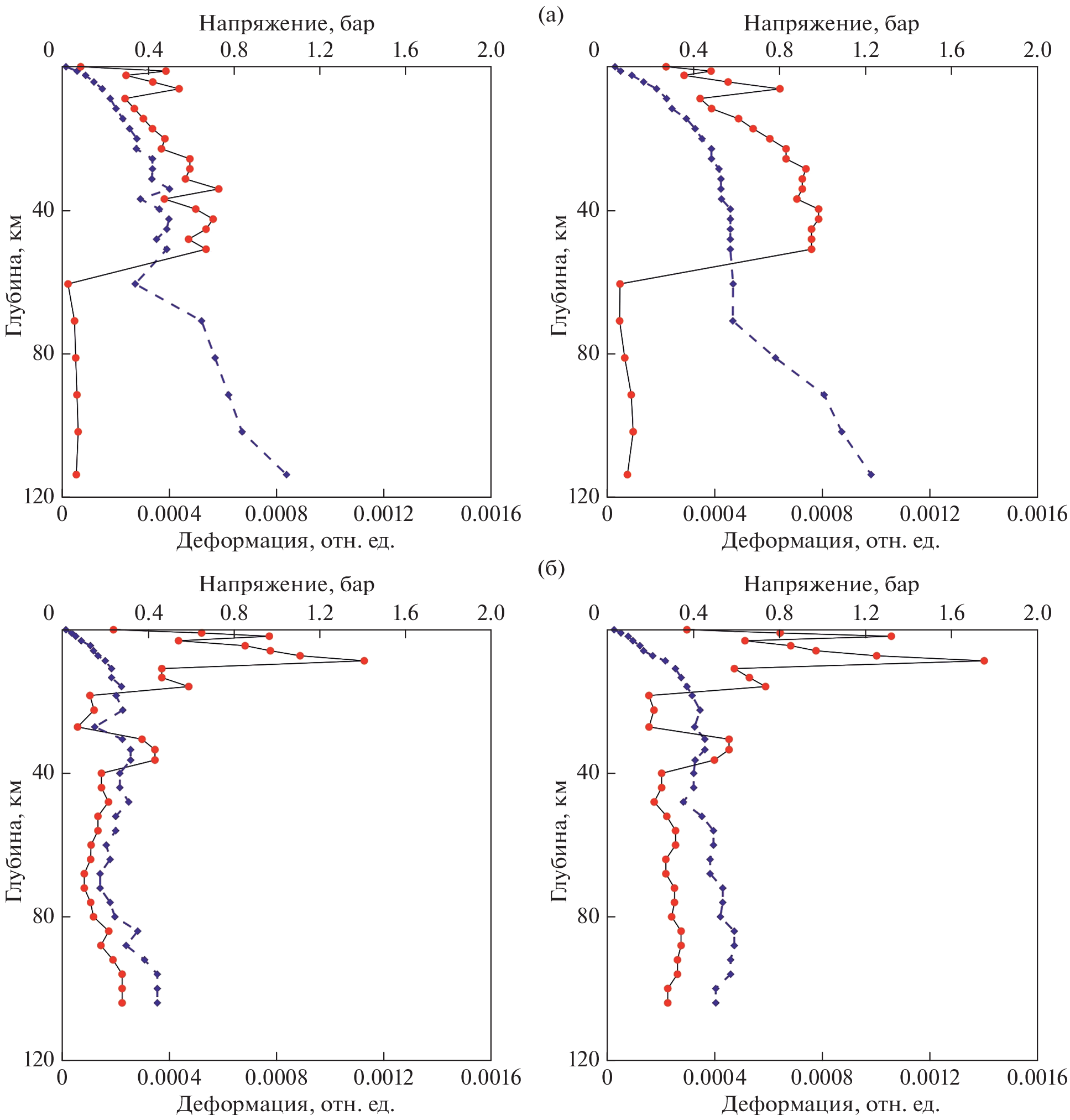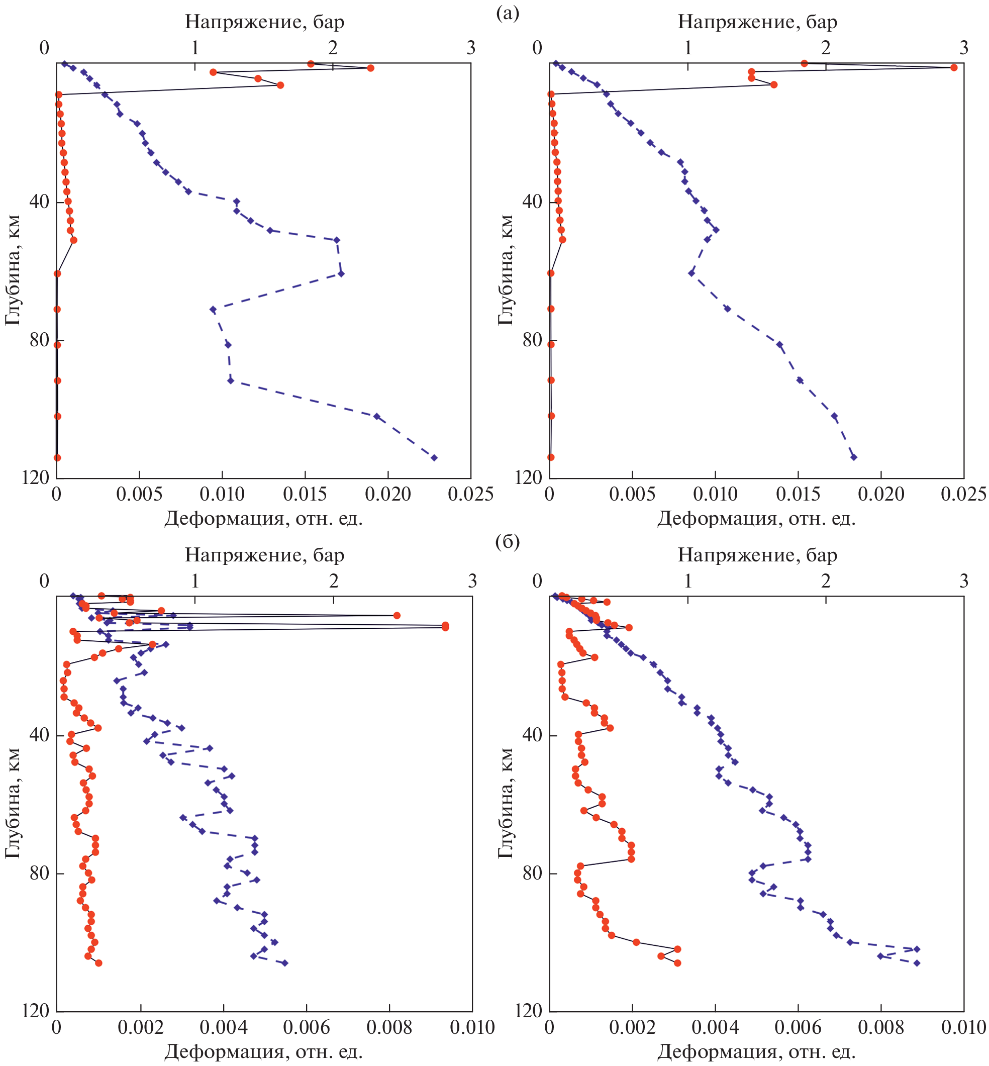 Анализируется отклик песчаных и глинистых приповерхностных грунтов (представляющих классы несвязных и связных грунтов) на сейсмические воздействия различной интенсивности по данным наблюдений in situ – по записям вертикальных групп японской сети сильных движений KiK-net. Из общего числа станций (~800) для анализа выбрано по 5 станций с приповерхностными песчаными и глинистыми грунтами, представленными в верхних слоях в наиболее чистом виде. Для “песчаных” и “глинистых” станций по методике [Pavlenko, Irikura, 2003] построены и проанализированы модели поведения грунта при сильных движениях, показывающие вертикальные распределения напряжений и деформаций, вызванных землетрясениями, в грунтовых слоях. Получены близкие оценки усиления сейсмических волн в песках и глинах при слабых движениях и близкие зависимости напряжение–деформация, характеризующие поведение приповерхностных грунтов при сейсмических движениях умеренной силы. Выполнен анализ разжижения песчаных грунтов при сильных движениях (землетрясение Тохоку 2011 г., с Мw ~ 9.0). Исследовано влияние эффектов протяженных сейсмических очагов (направленность их излучения) на поведение песчаных и глинистых грунтов и усиление в них сейсмических волн. Различия в поведении песчаных и глинистых грунтов отмечены лишь при сильных движениях: в песчаных грунтах возможно разжижение при уровне грунтовых вод порядка нескольких метров от поверхности, а в глинистых грунтах разжижения нет.