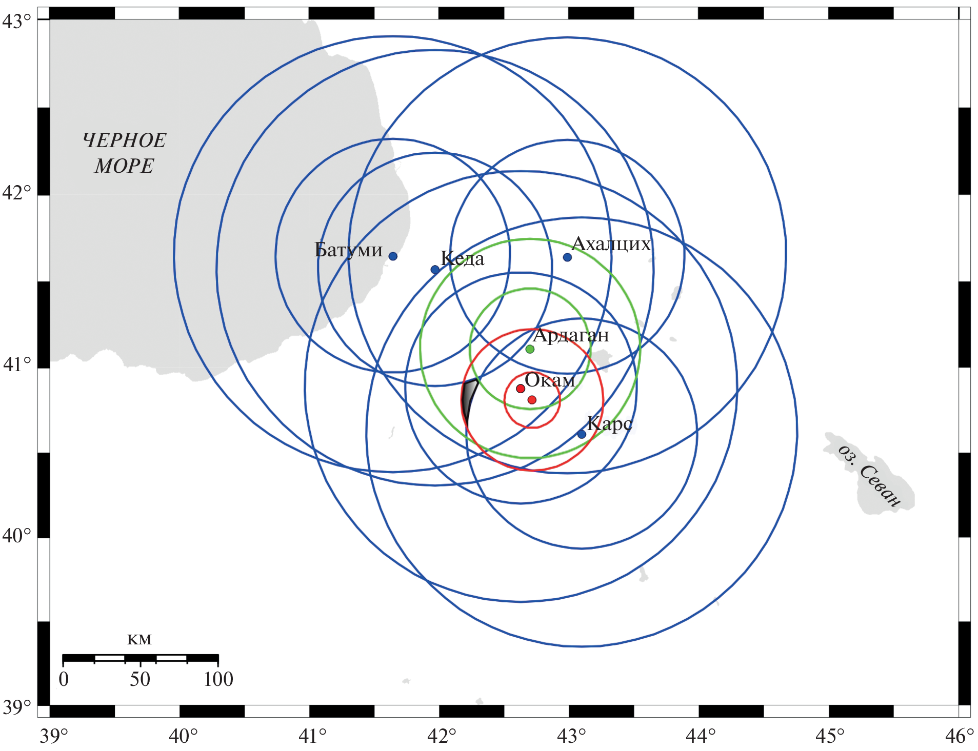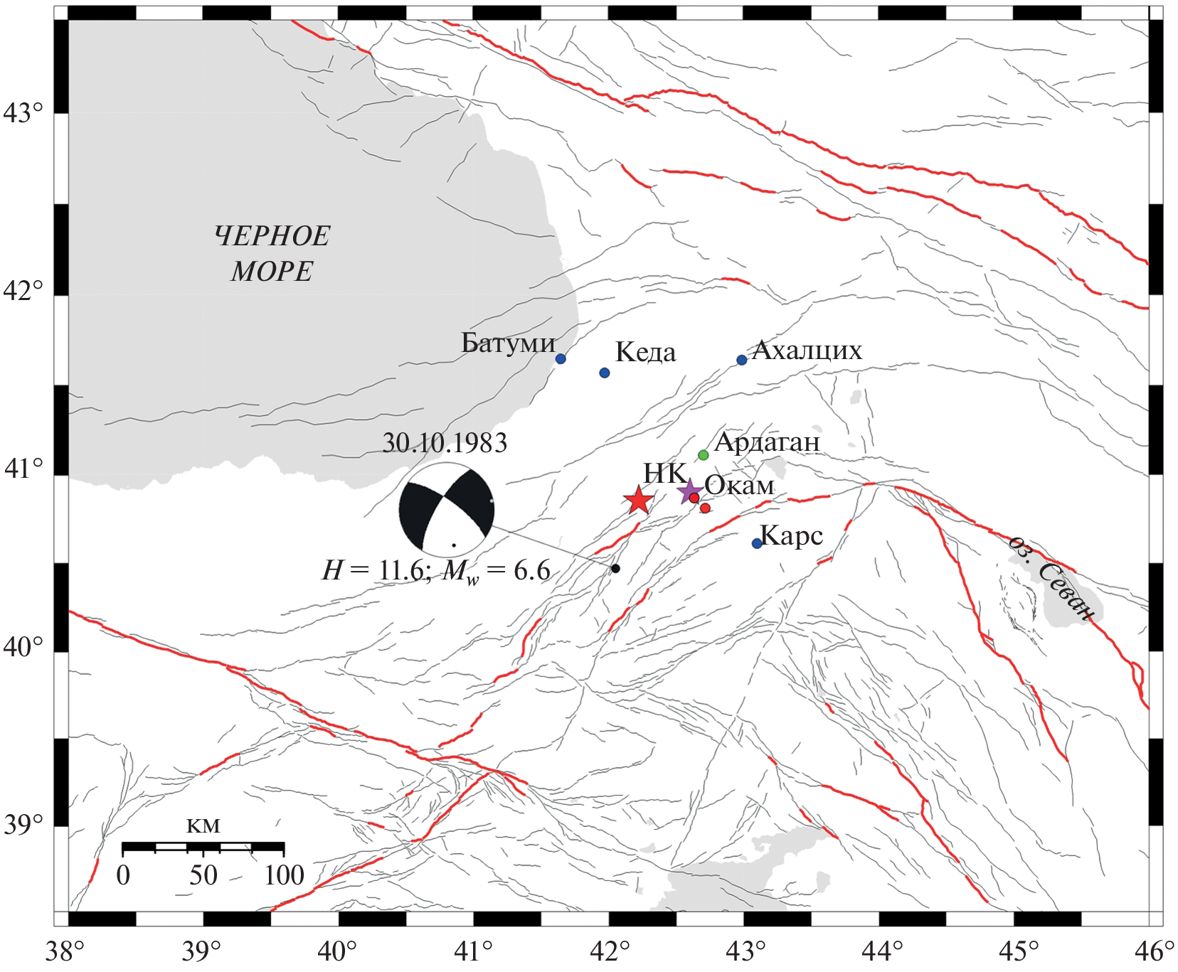 —The position of the hypocenter and the magnitude of the earthquake of September 11/23, 1888 were determined based on macroseismic data published in the Russian press in Russian, Armenian and Georgian. Calculations showed that the magnitude of the earthquake was previously significantly underestimated, which is why it was not included in the catalog of strong earthquakes in the Caucasus test region [Shebalin and Tatevossian, 1997]. The accuracy of the location of the hypocenter makes it possible to identify the active fault with which the source of the 1888 earthquake is associated. The earthquake with Mw = 6.6 that occurred almost 100 years later confirms the long-term activity of the Western branch of the East Anatolian fault zone.