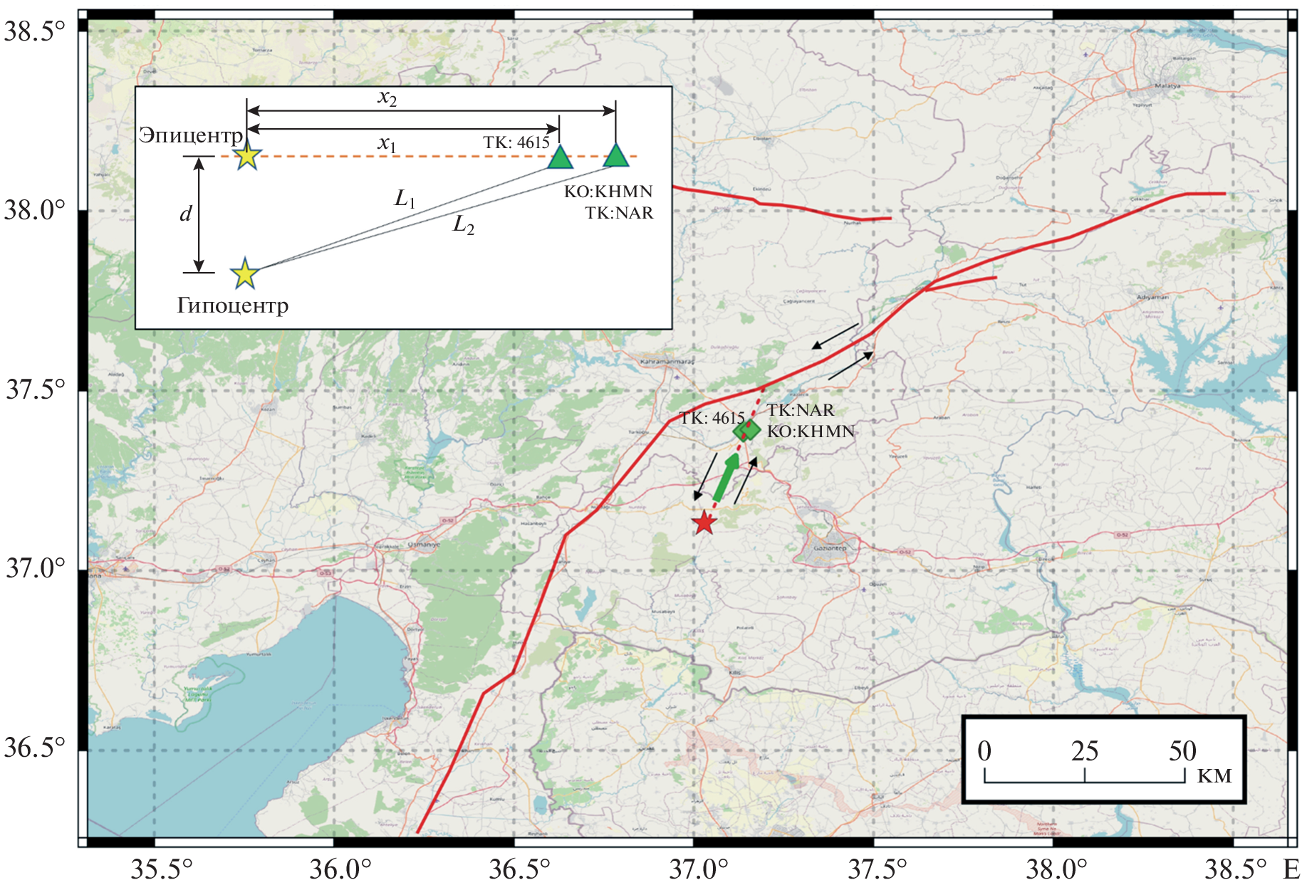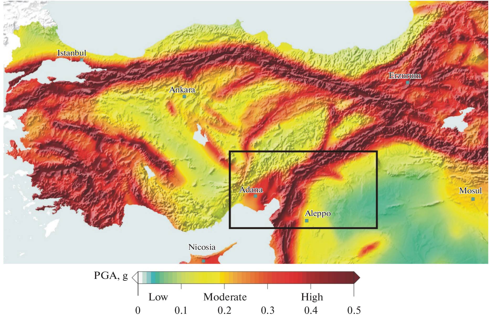 Abstract—An overview of the results obtained by foreign seismologists based on the records of Turkish seismic networks AFAD (State Agency for Disaster Management under the Ministry of Internal Affairs) is presented. The sequence of earthquakes began with the M7.8 main shock and includes thousands of aftershocks. The strongest events occurred in the first twelve hours, with the sources of two M7.0+ events located 100 km apart. Earthquakes have caused ground motions that are destructive to structures, the so-called “pulse-like waveforms”, and epicentral distances, as was previously noted, are not a good indicator of attenuation of waves from earthquakes with extended ruptures. The records of stations in the near-fault zones clearly revealed the directivity effects of seismic radiation. The M7.8 earthquake (main shock) was larger than expected in the current tectonic setting. The near-field records traced an early transition to the super-shear (~1.55Vs) rupture propagation on the Narli lateral fault, where the rupture originated and then passed into the East Anatolian fault. The early transition to the super-shear stage obviously contributed to the further propagation of the rupture and the initiation of slips on the East Anatolian fault. A dynamic fracture model has been constructed that matches the various results of inversions obtained by different authors and reveals spatially inhomogeneous rupture propagation velocities. Super-shear velocities exceeding the shear wave velocity Vs are observed along the Narli lateral fault and at the southwestern end of the East Anatolian fault. Since the late 1990s, seismologists have been working on incorporating the rupture directivity effects of extended sources into the probabilistic seismic hazard analysis procedures, but no consensus has been reached so far, and progress in this area can only be expected with the accumulation of a sufficient amount of observational data.