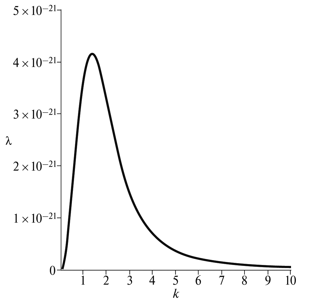 Рис. 4. Зависимость инкремента λ от волнового числа k для вязкой ньютоновской реологической модели.