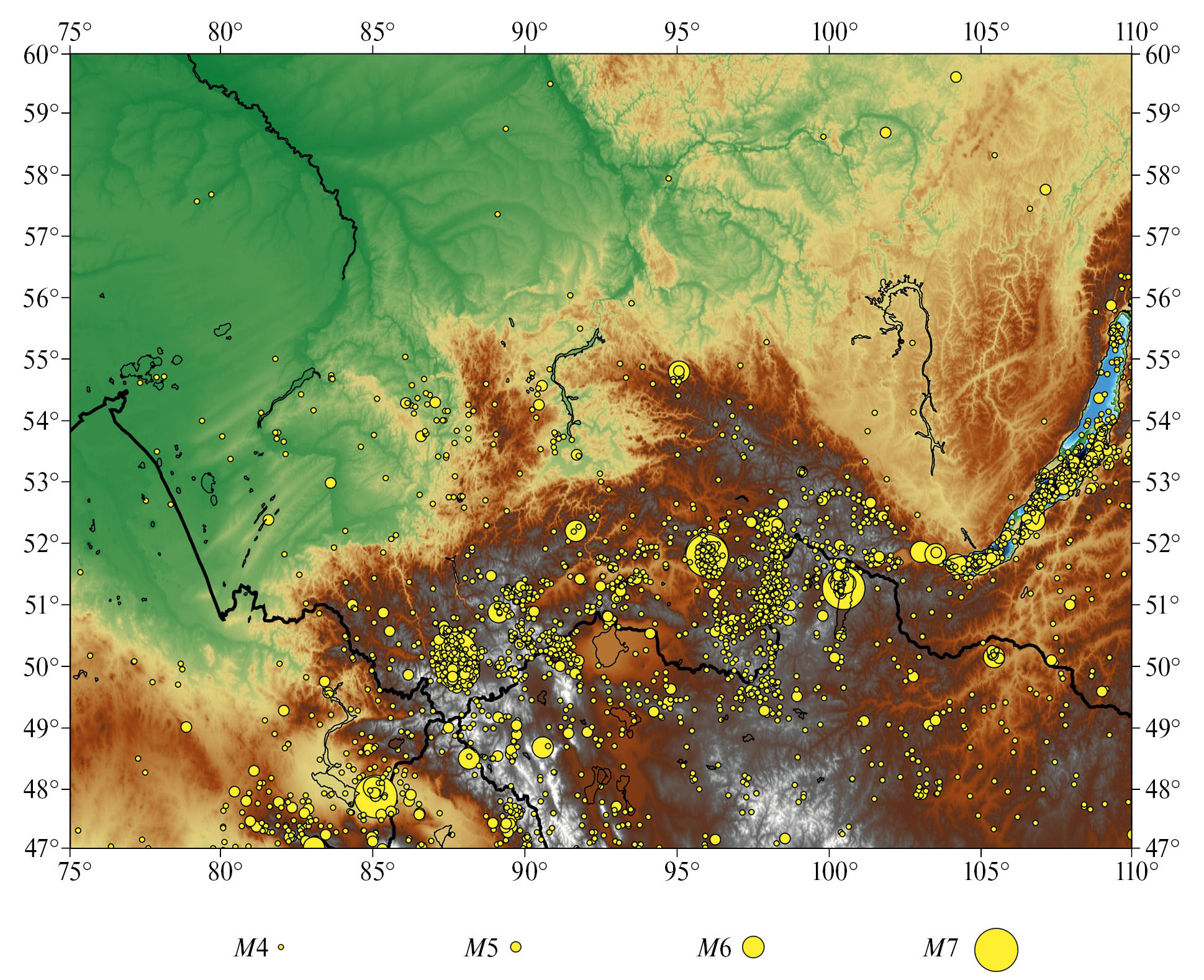 Территория Южной Сибири характеризуется высокой сейсмической активностью [Шебалин и др., 2022], по некоторым оценкам [Писаренко и др., 2022] максимальные возможные магнитуды могут даже несколько превышать M = 8, при этом сейсмичность здесь приурочена к геолого-тектоническим процессам именно в земной коре, а значит, наиболее вероятные значения глубин невелики. Поэтому определение распределения глубин землетрясений для данной территории является значимой как с точки зрения понимания реологических свойств земной коры в данном регионе, так и с практической точки зрения – для оценки сейсмического риска и сейсмической опасности, моделирования синтетического каталога землетрясений.