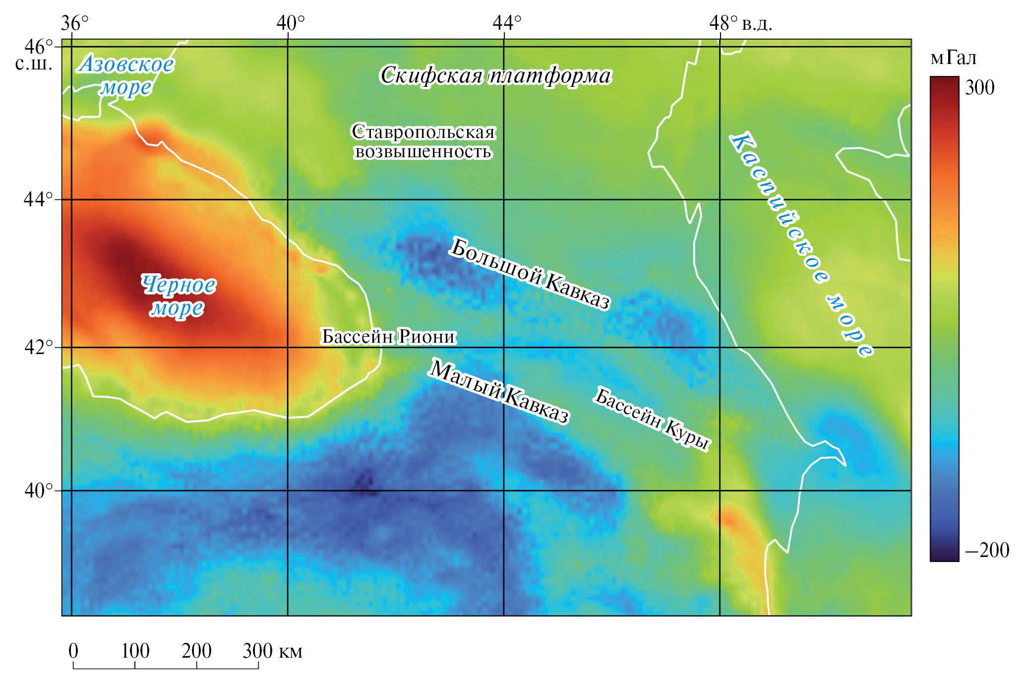 Несмотря на хорошую изученность, геотектонические концепции образования Большого Кавказа разбросаны в весьма широком диапазоне – от геосинклинальной [Шолпо, 1978] до субдукционной [Хаин, Ломизе, 2010; и др.]. Абсолютное большинство авторов [Трифонов, 2017; Хаин, Ломизе, 2010; Расцветаев, 2002; и др.] считают, что формирование покровно-складчато-надвиговой структуры Кавказа связано с сужением литосферы в результате сближения литосферных плит. В то же время, результаты ГНСС-измерений на территории Большого Кавказа [Лукк, Шевченко, 2019; Гурбанов и др., 2023] не согласуются с этими представлениями, поскольку согласно им, земная поверхность в данном районе не сужается, а расширяется. Для объяснения этого явления геологами выдвигаются достаточно “экзотические” гипотезы (в то же время имеющие сильные аргументы). Например, наличие в глубине выпирающего тела (диапира), плюма, уменьшения плотности верхнего слоя и др. Так как при общей тенденции к сужению глубинной части литосферы Кавказа, чисто с геометрических позиций, сферическая верхняя часть земной коры может расширяться при подъеме. В любом случае разрешить это противоречие может помочь сравнительный анализ вертикальных и горизонтальных движений и тектонических особенностей региона.