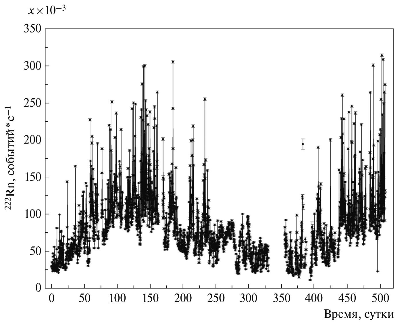 Рис. 5. Вариации скорости счета 222Rn из контрольной скважины в период 24.01.2020 г.–27.07.2020 г.