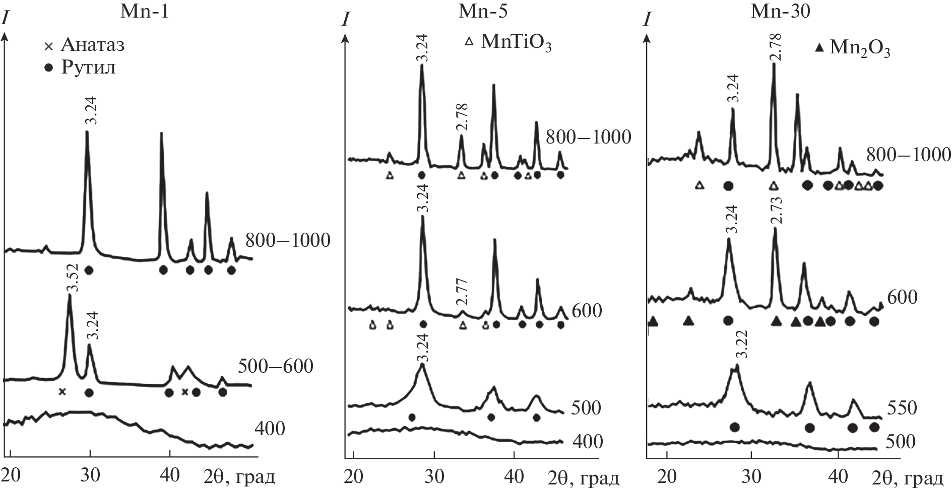 - Ivanova T., Harizanova A. Characterization of TiO and TiO–MnO Oxides Prepared by Sol–gel Method // Solid State Ionics. 2001. V. 138. P. 227–232. https://doi.org/10.1016/S0167-2738(00)00798-0