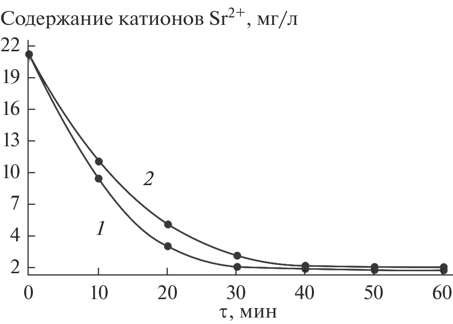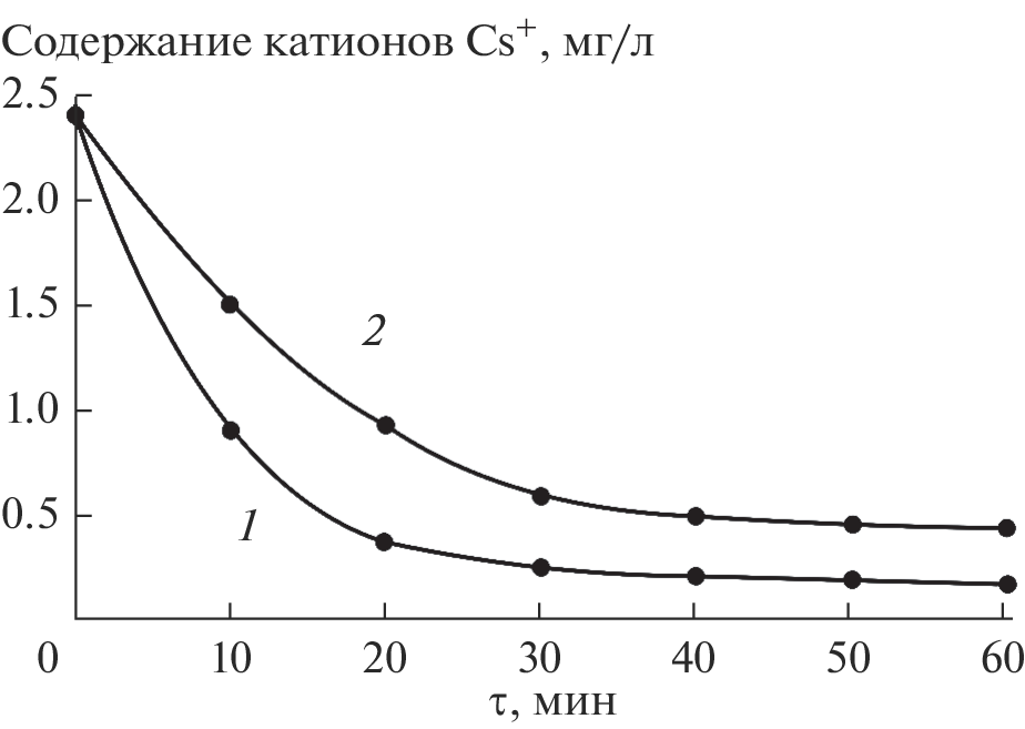 Using a model solution, we have demonstrated the feasibility of using titanium(IV) oxyhydroxyphosphate-based ion-exchange materials for extraction of Cs+ and Sr2+ cations from multicomponent high-salt bottom residues. Conditions for the use of the ion exchangers have been optimized experimentally: liquid : solid = 50, t = 25°C. It has been shown that Cs+ is effectively extracted at pH 2, whereas Sr2+, at pH 8. The zirconium-modified sorbent has been shown to have a higher affinity for metal cations. The modified sorbent is especially selective for cesium in the acid pH region owing to the higher mobility of the protons of its hydrogen phosphate groups in comparison with the unmodified sorbent composition.