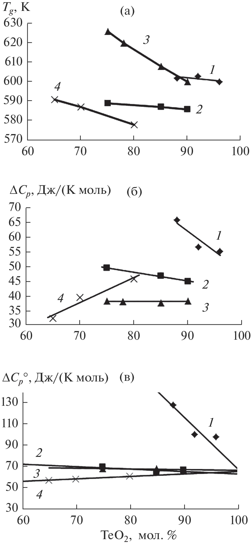 - Тихонова Е.Л., Лякаев Д.В., Гришин И.А., Коткова А.М., Маркин А.В. Термодинамические свойства стекол состава (TeО2)n(MoО3)1−n // Неорган. материалы. 2017. Т. 53. № 11. С. 1225–1232. https://doi.org/10.7868/ S0002337X1711015X