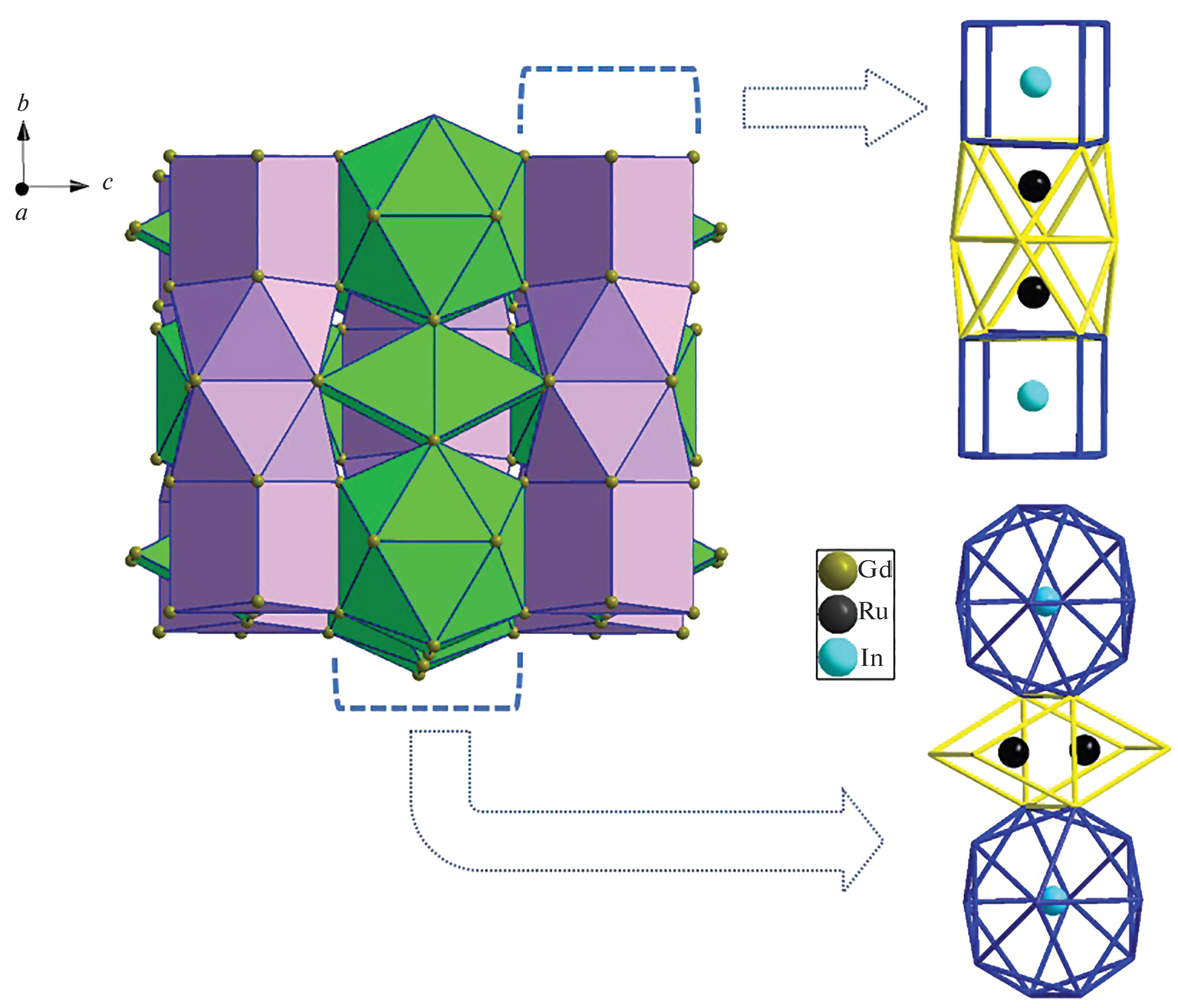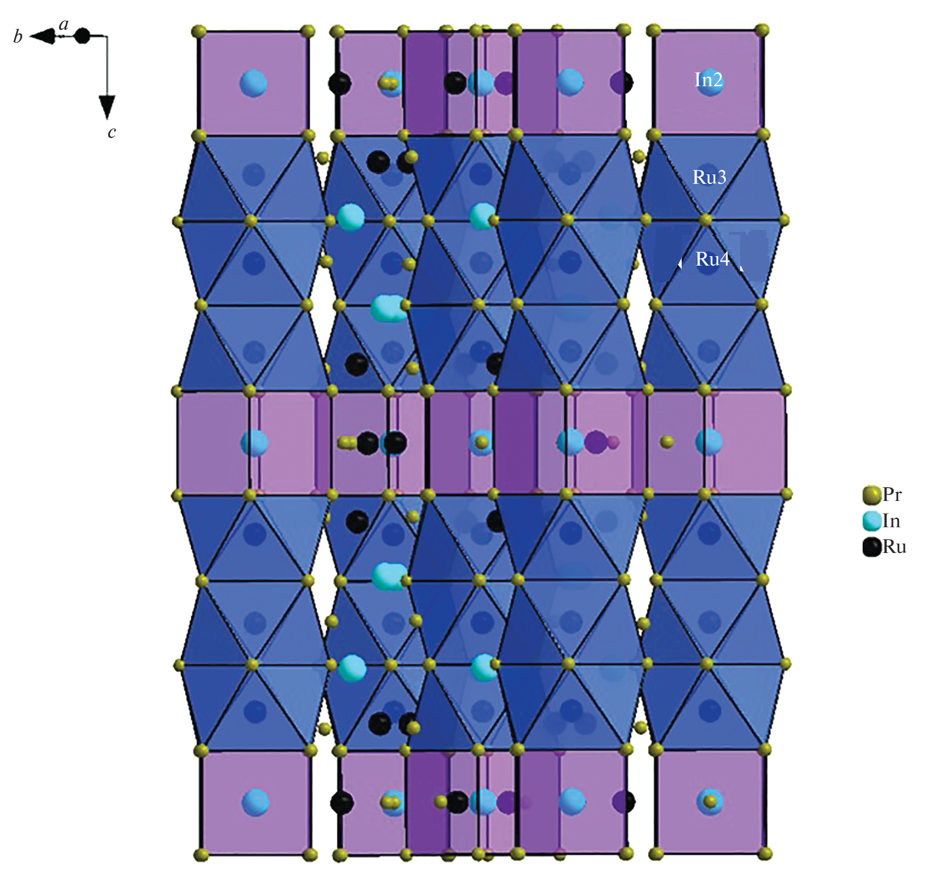 - Tursina A.I., Cherviakov S.G., Noël H., Chernyshev V.V., Seropegin Y.D. Lanthanum Ruthenium Indide, La21Ru9+xIn5–x (x = 1.2) // Acta Crystallogr., Sect. E: Struct. Rep. Online. 2010. V. 66. P. i40. https://doi.org/10.1107/S1600536810014509