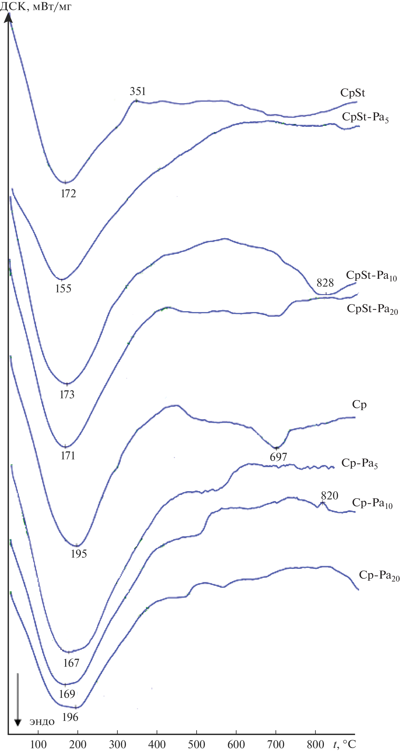 Органоминеральные сорбенты получены методом “мягкой” механоактивации воздушно-сухих клиноптилолитовых пород совместно с добавками синтетического полимера – полиакриламида – в лабораторном виброистирателе ИВЧ-3 (длительность ударно-сдвигового воздействия 3 мин, доза поглощенной энергии 2.16 кДж/г). Образцы охарактеризованы методами растровой электронной микроскопии, инфракрасной спектроскопии, дифференциальной сканирующей калориметрии, термогравиметрии, рентгеновской порошковой дифракции, низкотемпературной адсорбции–десорбции азота. Определены их удельная площадь поверхности, удельный объем и диаметр пор, насыпная и истинная плотности, гигроскопическая влажность, сорбционная емкость по нефти. Установлено, что модифицирование клиноптилолитовых пород 5 и 10 мас. % полиакриламида снижает нефтеемкость образцов на 6–18%. При использовании 20 мас. % полиакриламида емкость по нефти остается такой же, как у механоактивированных клиноптилолитовых пород без полимера.