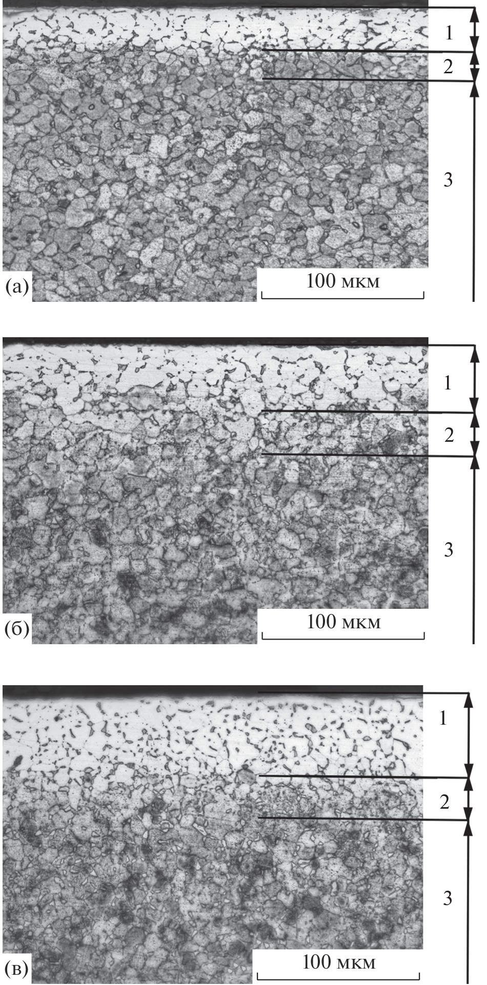 Ti–6Al–5V titanium alloy was subjected to surface saturation with carbon, nitrogen, and oxygen in order to study the effect of surface modification on its wear resistance and biocompatibility. The alloy was saturated with carbon and nitrogen in low-pressure atmospheres. Oxygenation was carried out by heating the alloy in a solid carburizing agent. The structure and phase state of the grown layers were studied by optical microscopy and X-ray diffraction. General trends in the saturation of the titanium alloy with nonmetals are the formation of a diffusion layer and an increase in the amount of phases based on the α-Ti solid solution, followed by the formation of intermediate phases, such as carbides, nitrides, and oxides differing in stoichiometry, on the surface of the continuous layer. After saturation, the alloy was covered with thin carbide, nitride, and oxide surface layers and had diffusion layers under them. The hardness of the nitrogenated and oxygenated surfaces was 950–1000 HV, and that of the surfaces saturated with carbon was 570 HV. The wear resistance of the alloy was lowest in the as-prepared state and highest after oxygenation. Biocompatibility was assessed from the proliferation of osteoblast-like cells of the MG-63 line. The best biocompatibility was demonstrated by the oxygenated samples, and the biocompatibility of the nitrogenated samples was better than that of the carburized samples. The untreated alloy showed the lowest biocompatibility.