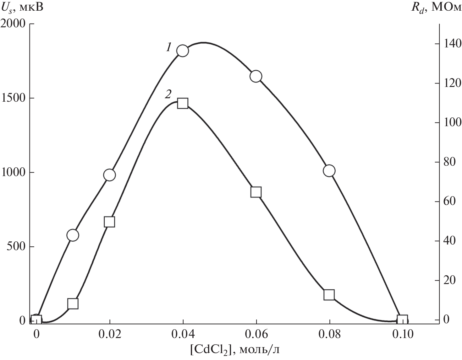 Методом химического осаждения получены двухфазные тонкопленочные композиты, состоящие из твердых растворов замещения CdxPb1 − xS (0.007 ≤ x ≤ 0.068) кубической структуры B1 (пр. гр. \(Fm\bar {3}m\)) и аморфного сульфида кадмия CdS. Методом атомно-силовой микроскопии исследована топология поверхности синтезированных пленок, рассчитаны параметры микрорельефа поверхности. Установлена корреляция между составом и функциональными свойствами тонкопленочных слоев CdS–PbS. Впервые исследована чувствительность двухфазных пленок CdxPb1 – xS/CdS к аммиаку NH3 в воздушной среде. Предел обнаружения составил 10 ppm (6.22 мг/м3) при комнатной температуре.