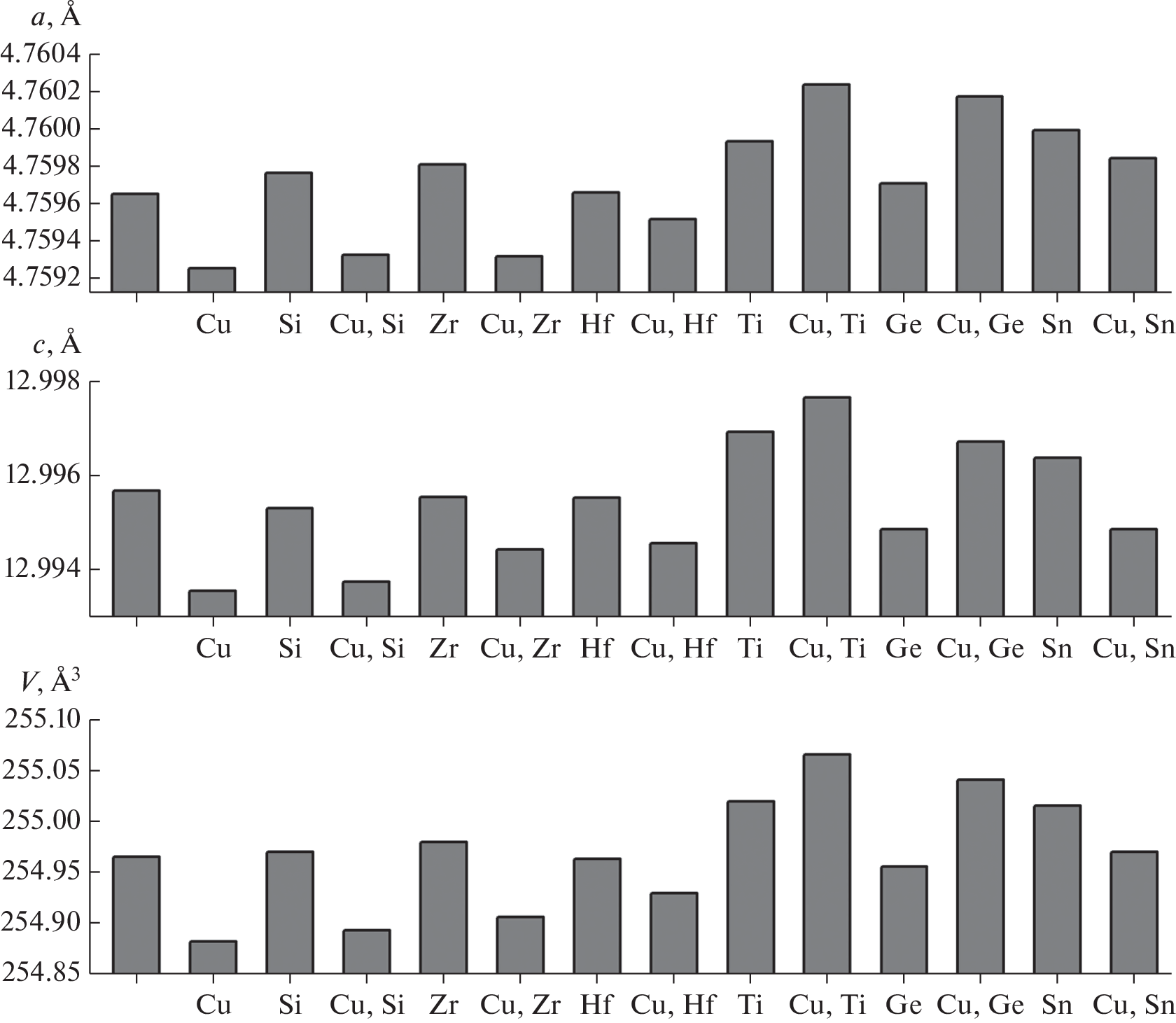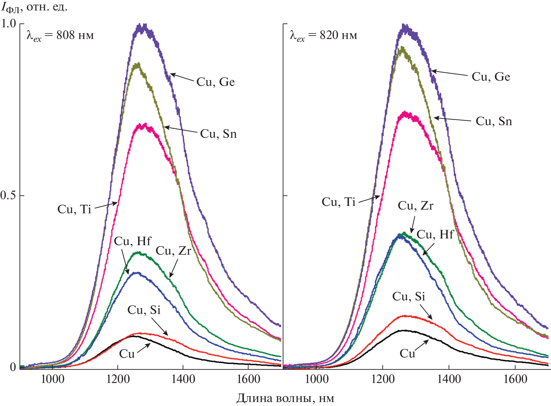 Изучена широкополосная (1000–1600 нм) ИК-фотолюминесценция поликристаллических образцов корунда (α-Al2O3), содержащих примесные ионы меди, а также дополнительные солегирующие ионы элементов в степени окисления 4+: Si4+, Ge4+, Ti4+, Zr4+, Hf 4+, Sn4+. Показано, что интенсивность ИК-фотолюминесценции корунда при легировании только медью весьма незначительна и резко усиливается при дополнительном легировании некоторыми четырехзарядными катионами. Наибольшее усиление ИК-фотолюминесценции примесных ионов Cu2+ получено при солегировании катионами Ti4+, Ge4+ и Sn4+. По-видимому, эти ионы обеспечивают зарядовую компенсацию при совместном с ионом Cu2+ вхождении в кристаллическую решетку корунда и процесс замещения выглядит так: 2Al3+ → Cu2+ + M4+; M4+ = Ti4+, Ge4+, Sn4+… . Подобным образом вводимые дополнительно в решетку корунда солегирующие четырехзарядные ионы повышают растворимость Cu2+ в α-Al2O3, что ведет к усилению фотолюминесценции соответствующего материала.