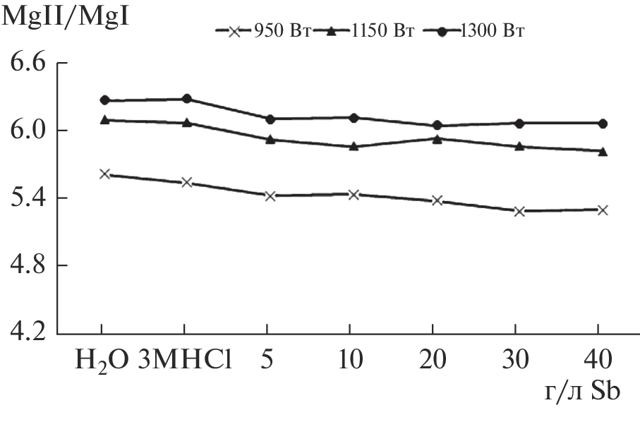Для оперативного аналитического контроля технологии получения чистой сурьмы разработана методика многоэлементной атомно-эмиссионной спектроскопии с индуктивно-связанной плазмой (АЭС ИСП). Выбраны аналитические линии определяемых элементов с наименьшими спектральными влияниями. Изучено влияние концентрации матричного компонента (от 5 до 40 г/л) на аналитические сигналы элементов-примесей. Изменения условий возбуждения в плазме при разном содержании сурьмы в растворе и разной мощности ИСП оценивали с помощью комплексного показателя жесткости. Показатель жесткости рассчитывали по отношению интенсивностей линий магния–ионной к атомной. Установили, что 40 г/л сурьмы в анализируемом растворе снижает показатель жесткости до 5%. Правильность разработанной методики подтверждена экспериментом “введено–найдено” и сравнением с результатами, полученными независимым методом. Предложенная методика анализа сурьмы позволяет определять 56 элементов-примесей с пределами обнаружения n × 10–7–n × 10–4 мас. %.