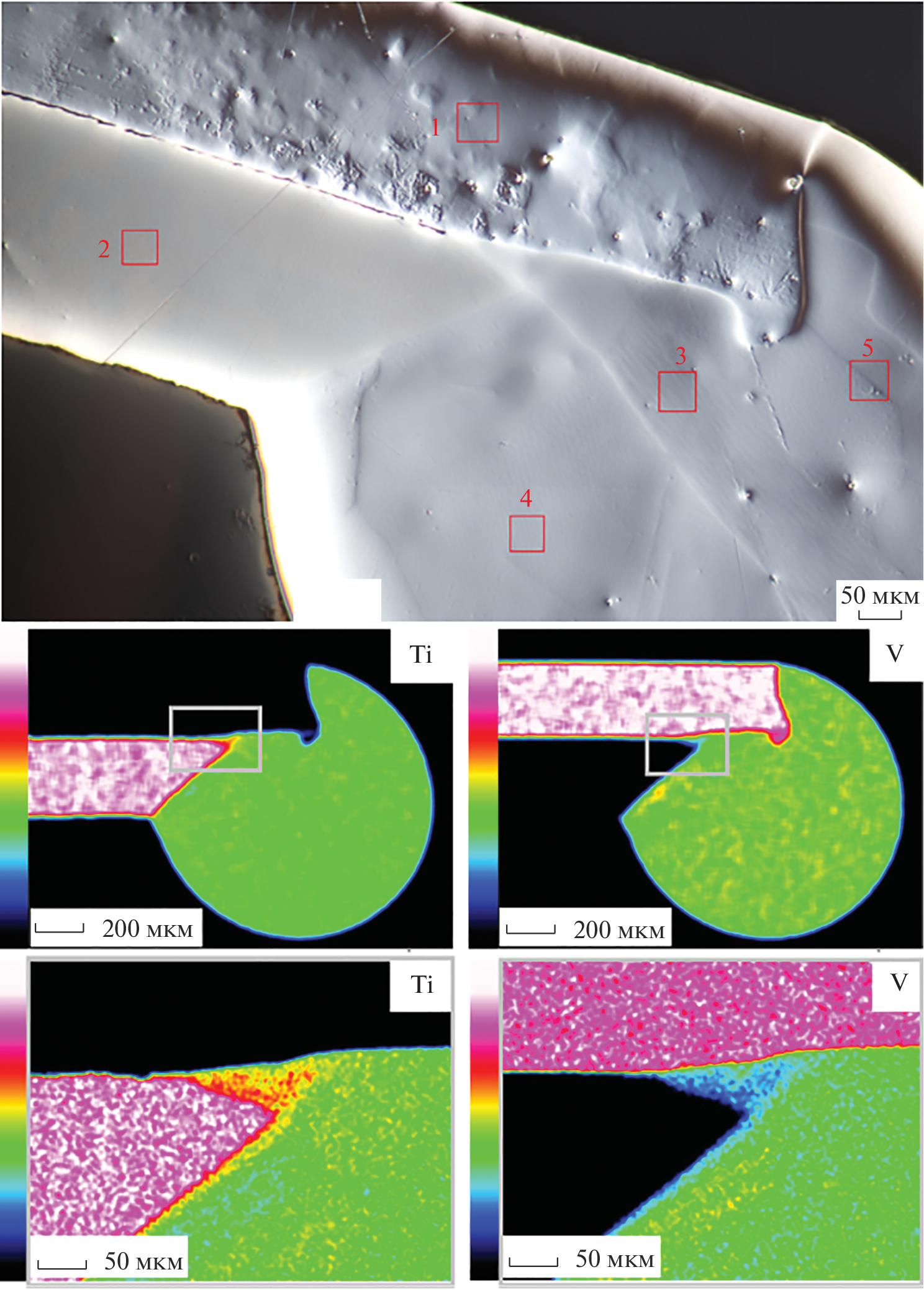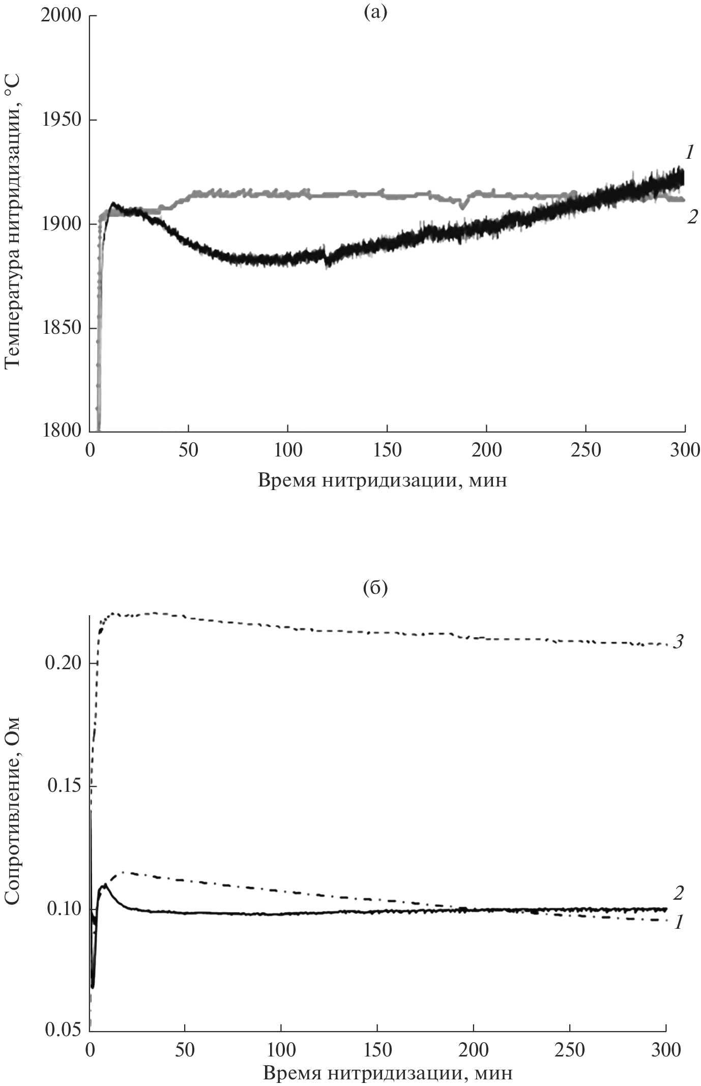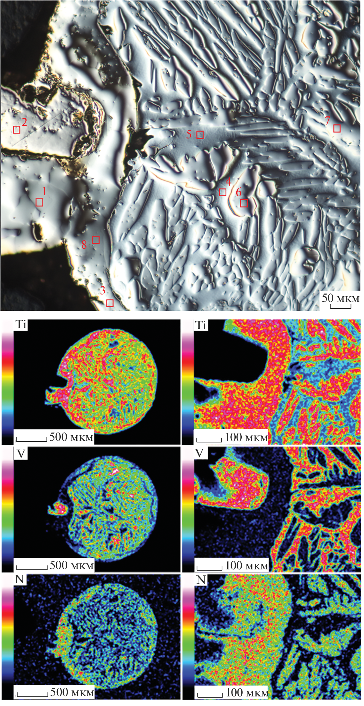 Контролируемой нитридизацией металлических пар Ti–V синтезированы керамические нитридные образцы заданных состава и формы. Установлены кинетические и вольтамперные зависимости взаимодействия металлических пар Ti–V с азотом. Для разных частей пары процесс азотирования характеризуется разными механизмами. Для чистых металлов формирование керамики, близкой к стехиометрическому составу, происходит через образование трех- и двухслойных градиентных структур. Нитридизация области спая, содержащего твердый раствор Ti–V, определяется химическим сродством титана и ванадия к азоту. Образование нитрида титана приводит к распаду твердого раствора Ti–V в спае и сепарации металлического ванадия на границах зерен. Скорость азотирования ванадия возрастает с уменьшением количества титана в твердом растворе. Проведена оценка величины термо-ЭДС системы Ti–V разной степени азотирования в интервале температур от –195.7 до +550°С. Установлены температурные зависимости термо-ЭДС и коэффициента Зеебека для металлокерамических и керамических структур. Для всех азотированных пар характерно монотонное увеличение термо-ЭДС во всем температурном интервале. Нитридизованные пары титан–ванадий заданного состава можно использовать в качестве керамических термоэлектрических преобразователей.