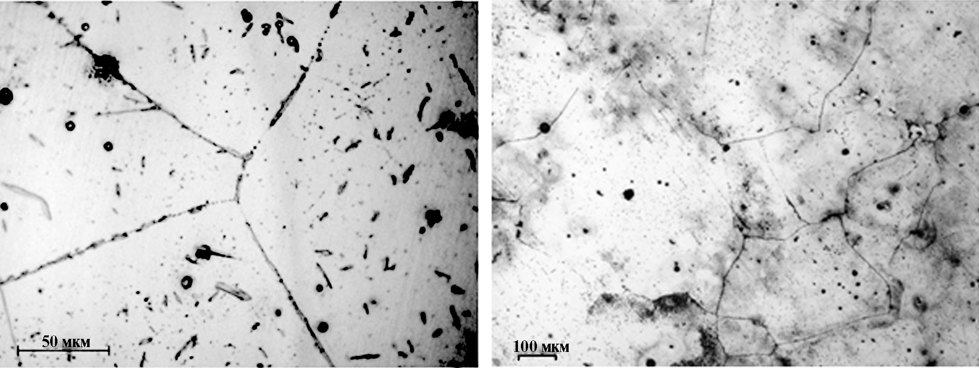 Рис. 8. Микрофотографии синтезированных литых алюминидов железа Fe3Al (α = 0.3), FeAl (α = 0.4)