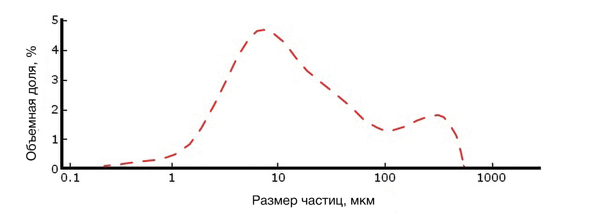 Рис. 3. Дифференциальное распределение по размерам частиц порошка диборида гафния