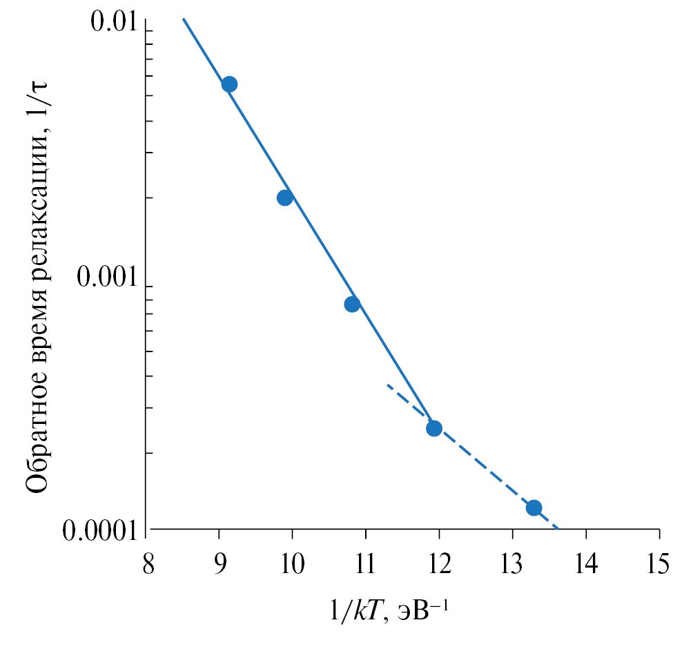 Рис. 3. Зависимость постоянной времени от обратной температуры