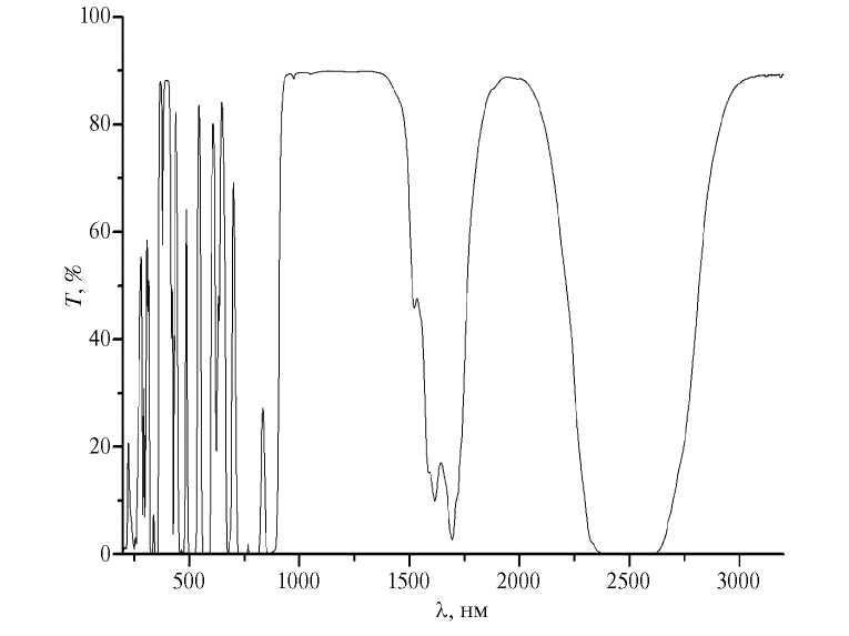 Рис. 3. Спектр пропускания монокристалла Ca0.6Sr0.2Nd0.2F2.2 (толщина образца 15 мм)