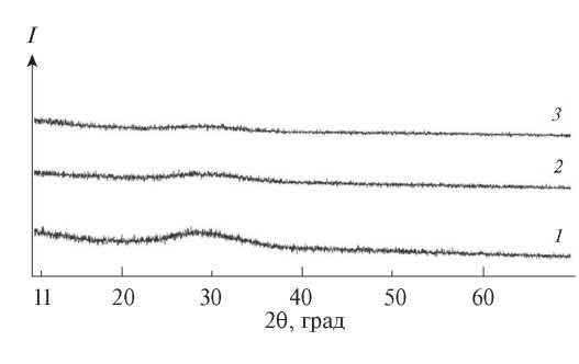 Рис. 1. Рентгенограммы стекол Ст-1 (1), Ст-2 (2), Ст-3 (3).
