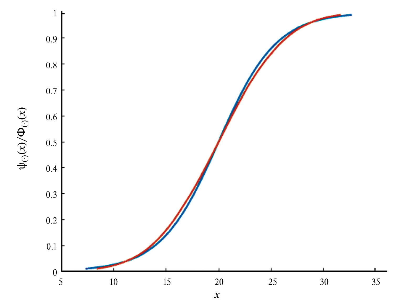 На рис. 1 приводится пример графиков функций (●)(x) и Ф(●)(x) для случая, когда (●) = e(●) и m(●) = e(●).