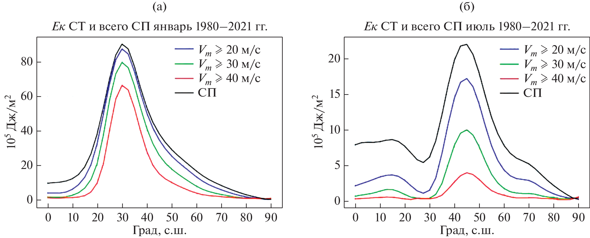 Based on the reanalysis data quantitative estimates of the kinetic energy of the high-altitude jet streams of the Northern Hemisphere (EK JS NH) and its changes in the annual cycle and interannual variability for the period 1980–2021 were obtained under different conditions for the minimum wind speed Vm in the JS area. Adequate estimates are made for the share of the total kinetic energy of the atmosphere of the Northern Hemisphere associated with JS (PEк JS). The share of the volume of atmospheric layers in the JS area in the NH in the total analyzed atmospheric layer of 500–100 hPa (PV JS) was also estimated. Significant changes were noted in summer including significant weakening trends of EК, PEк and PV in July and August at Vm ≥ 20 and Vm ≥ 30 m/s. In winter significant changes were noted only for PV – a decreasing trend at Vm ≥ 20 and Vm ≥ 30 m/s. Seasonal features of JS connection with El Niño phenomena are noted which are most significantly manifested from January to April.