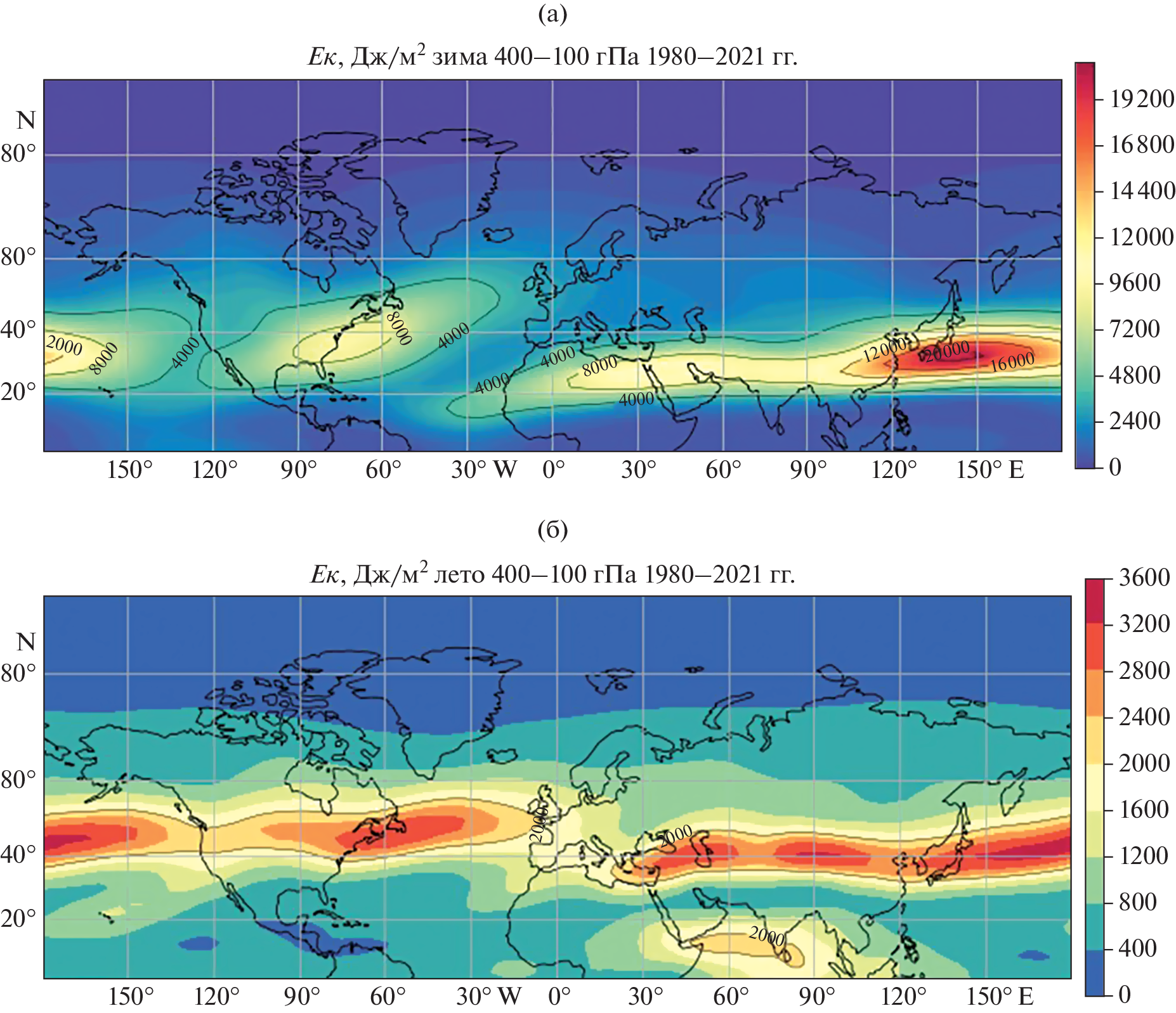 - Pena-Ortiz C., Gallego D., Ribera P., Ordonez P., Alvarez–Castro M. Del C. Observed trends in the global jet stream characteristics during the second half of the 20th century // J. Geophys. Res.: Atmospheres. 2013. V. 118. № 7. P. 2702–2713.