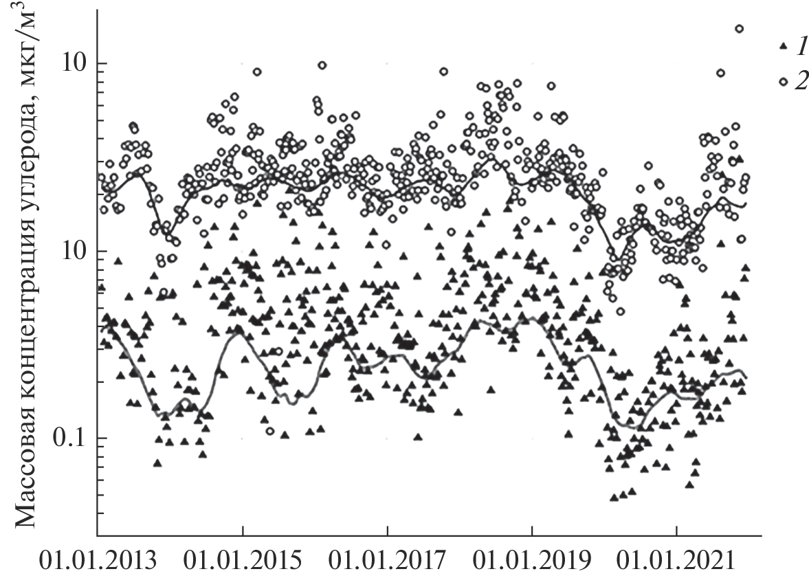 - Cao J.J., Zhu C.S., Tie X.X., Geng F.H., Xu H.M., Ho S.S., Wang G.H., Han Y.M., Ho K.F. Characteristics and sources of carbonaceous aerosols from Shanghai, China // Atmos. Chem. Phys. 2013. V. 13. № 2. P. 803–817.