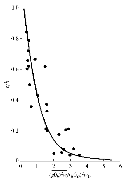 Профиль кубической аппроксимации, изображенный на рис. 3, качественно воспроизводит форму измеренного вертикального профиля . При этом, согласно (14), доминирующий турбулентный масштаб сравнительно мал возле горизонтальных границ конвективного слоя и достигает максимума примерно на уровне .