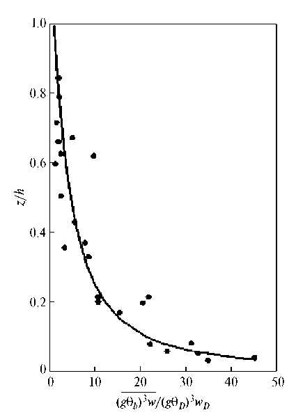 Для конвективного пограничного слоя атмосферы без сдвига ветра теория локального подобия была впервые предложена в работе [Zeman, Lumley, 1976]. В качестве базовых параметров в этой теории использовалась высота z и локальный поток плавучести , величина которого пропорциональна турбулентному конвективному потоку тепла на этом уровне. Последовательное развитие варианта теории [Zeman, Lumley, 1976] выполнено в работе [Вульфсон и др., 2004], см. также [Sorbjan, 1986]. Другой вариант теории локального подобия для конвективного пограничного слоя атмосферы подробно обсуждался в серии работ [Sorbjan, 1986; 1987; 1988; 1990; 1991]. В качестве базовых параметров в этой теории использовались параметр скорости и параметр плавучести , где – локальный поток “буссинесковой” плавучести на произвольном уровне z, пропорциональный конвективному потоку тепла.