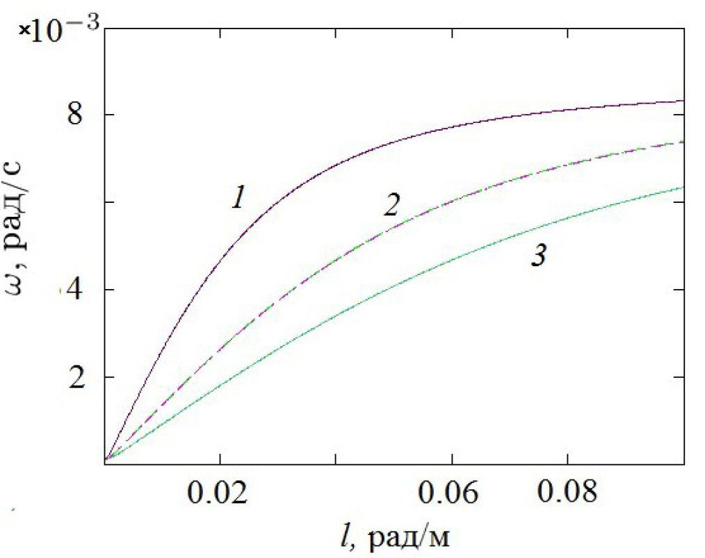 Рис. 1. Дисперсионные кривые первых трех мод.