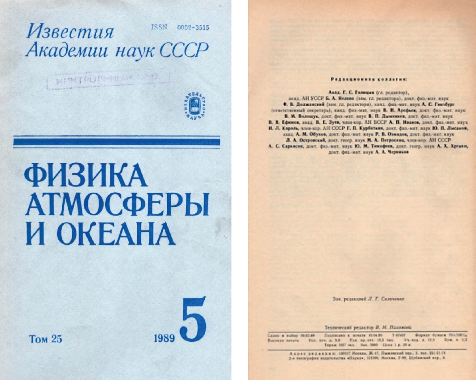 Журнал «Известия АН СССР. Физика атмосферы и океана», первый номер которого вышел в январе 1965 г., явился продолжателем традиции издания Академией наук СССР геофизических журналов. С 1937 по 1950 г. издавался журнал «Известия Академии наук СССР. Серия географическая и геофизическая», затем из этого журнала выделился журнал «Известия АН СССР. Серия геофизическая (1951–1964) – предтеча нашего журнала.