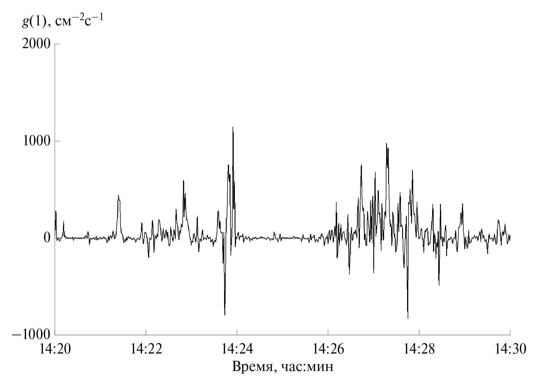 Рис. 5. Плотность потока аэрозоля при всплесковой эмиссии в период с 14:20 до 15:20