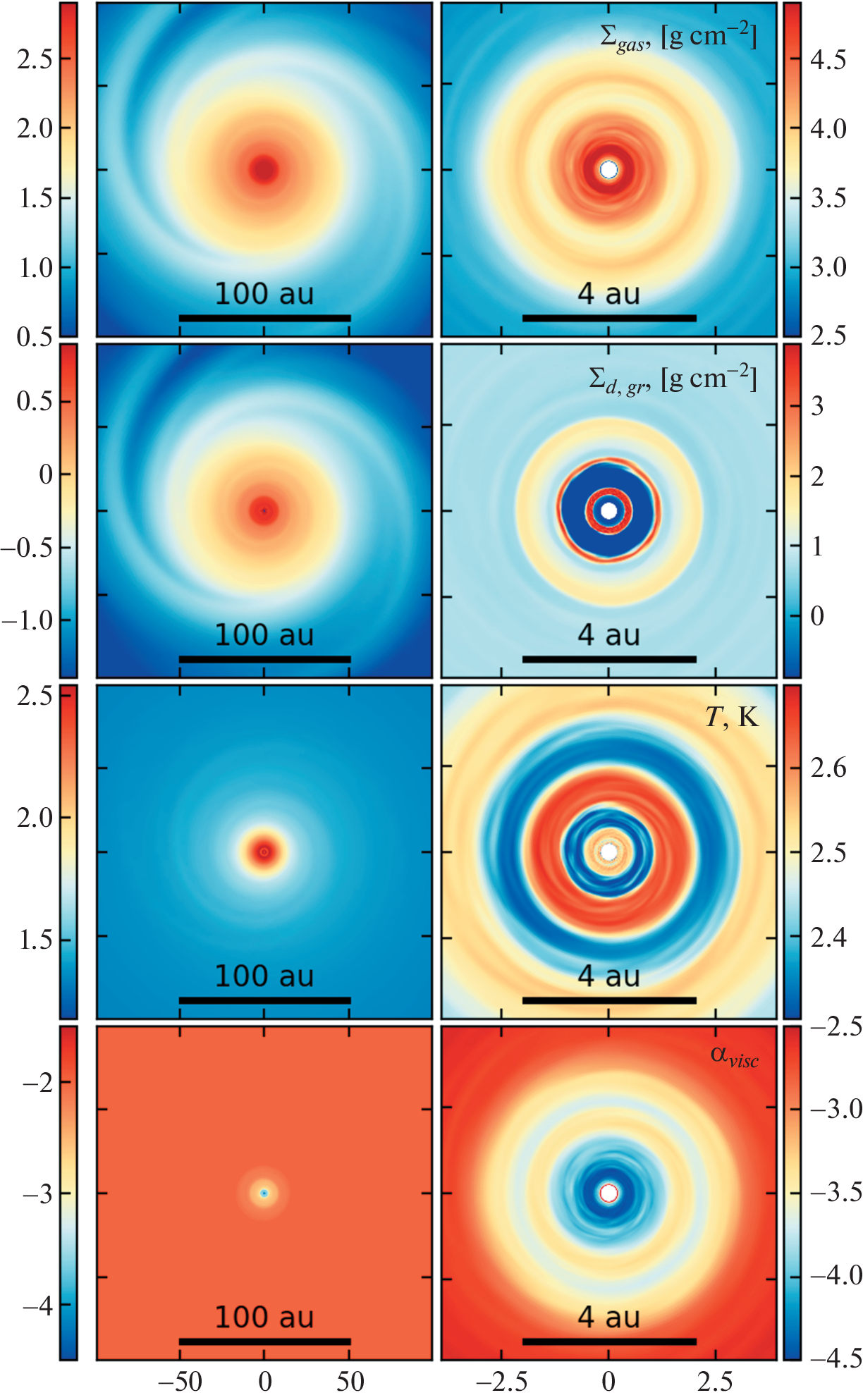 - E. I. Vorobyov, V. Akimkin, O. Stoyanovskaya, Y. Pavlyuchenkov, and H. B. Liu, Astron. and Astrophys. 614, id. A98 (2018), arXiv:1801.06898 [astro-ph.EP].