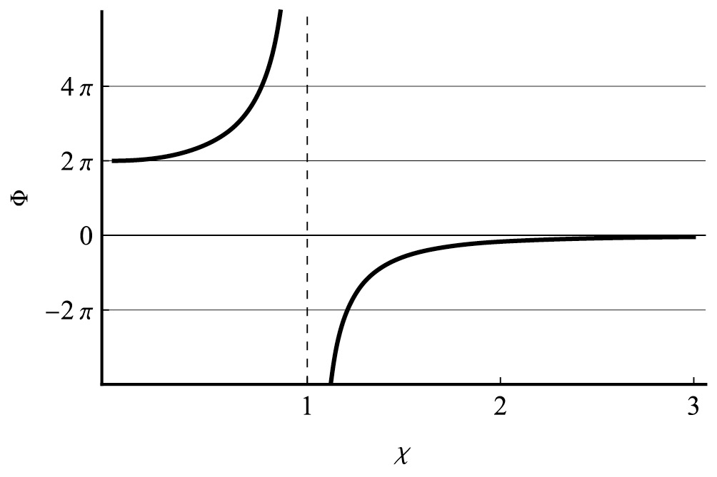 Знание асимптотического поведения эллиптических интегралов позволяет выделить особенность функции Ф(χ) при c → 1: