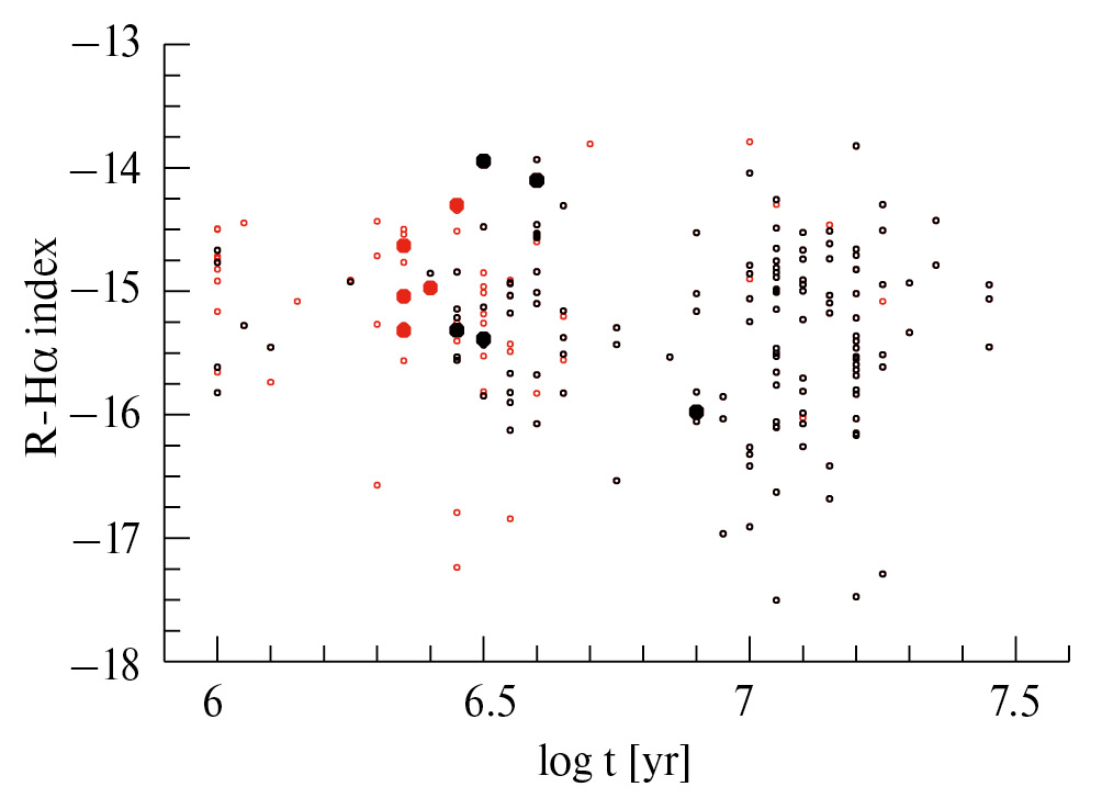 - Мы подтверждаем вывод работы [19] о том, что EW(Hα) и индекс R - Hα являются плохими индикаторами оценки возраста молодой звездной системы.