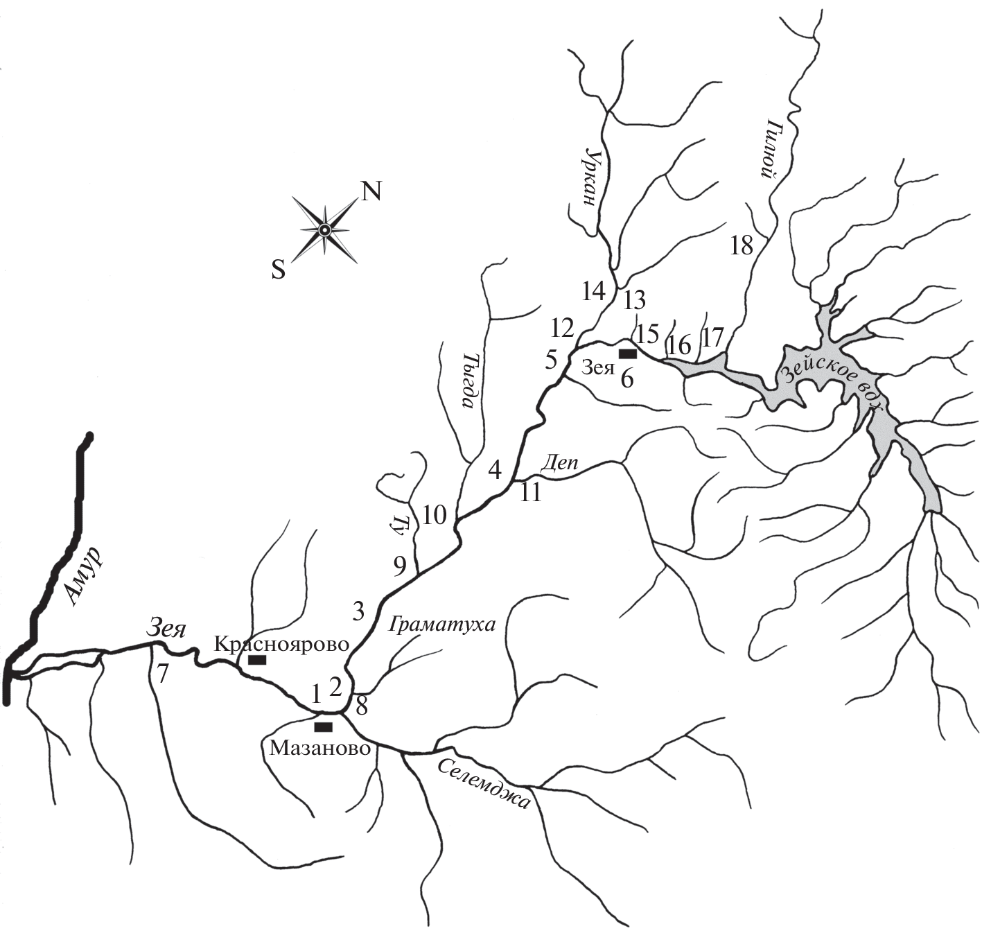 - Sirotsky S.E., Teslenko V.A. 2010. Fiziko-geograficheskaya kharakteristika basseyna reki Zeya v rayone issledovaniy – Physical and geographical characteristics of the Zeya river basin in the study area – In: Hydrobiological monitoring of the zone of influence of the Zeya hydroelectric complex. Khabarovsk. P. 12–23 (In Russ.).