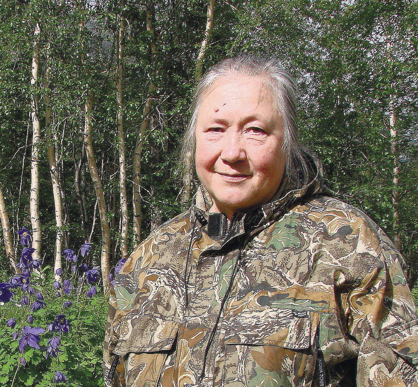 Valentina Andreevna Kostina at the alpinarium in the Botanical Garden (Murmansk Region).
