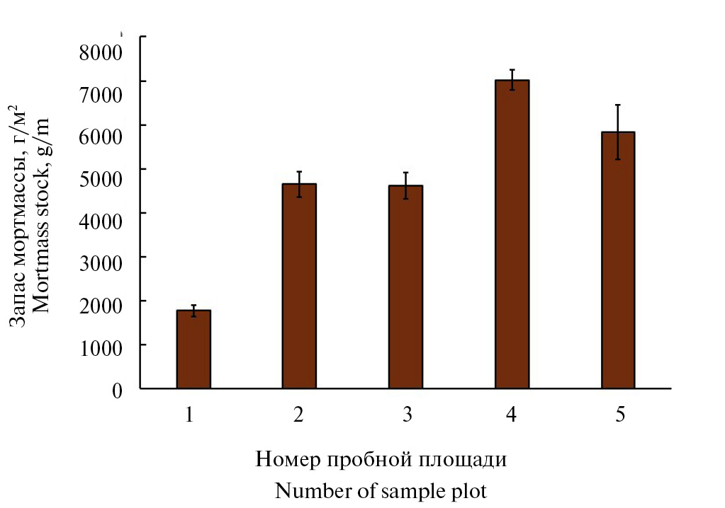Fig. 5. Stock of plant waste in the studied pine forests.