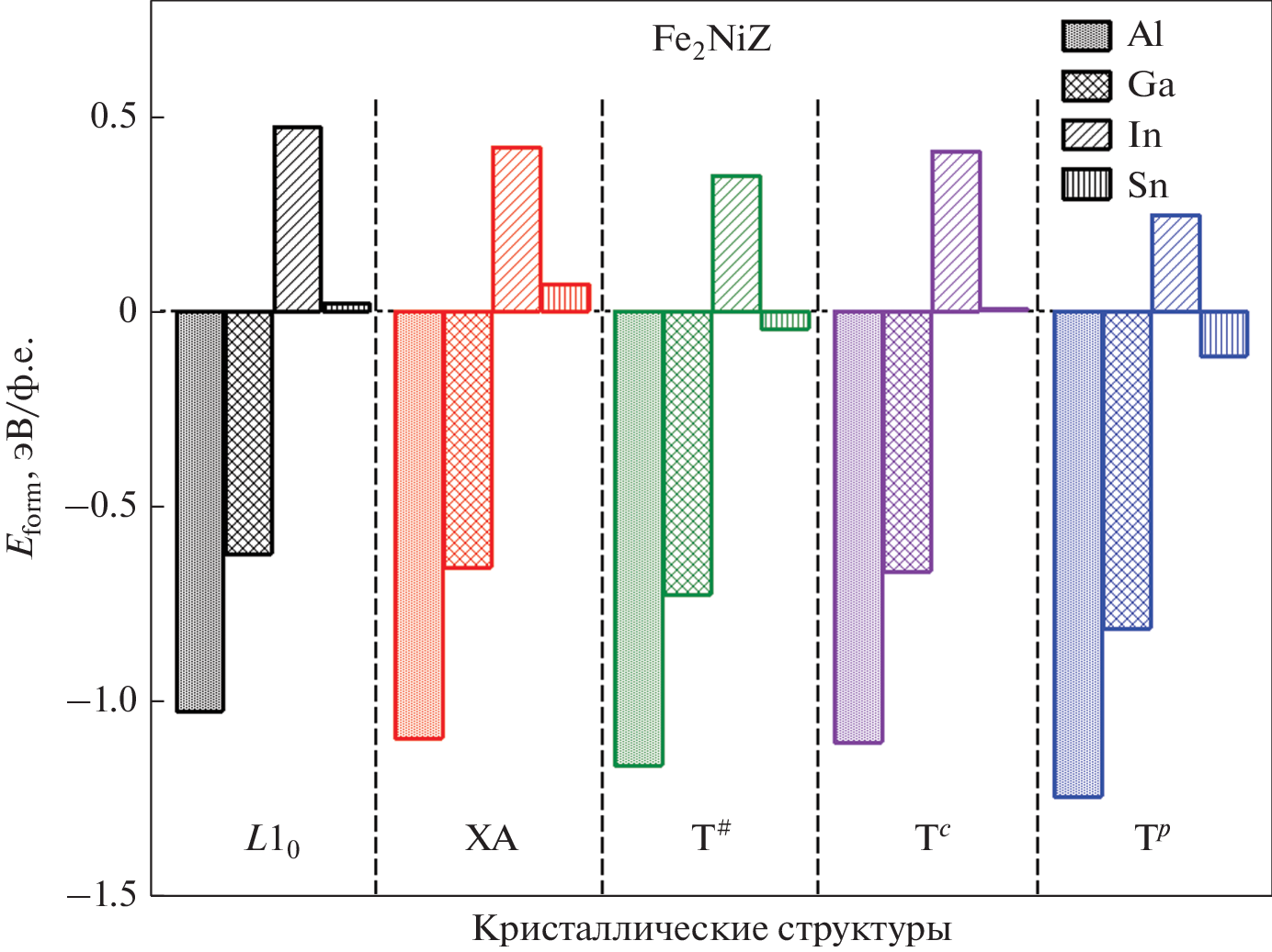 - Sokolovskiy V.V., Miroshkina O.N., Buchelnikov V.D., Gruner M.E. Impact of local arrangement of Fe and Ni on the phase stability and magnetocrystalline anisotropy in Fe–Ni–Al Heusler alloys // Phys. Rev. Mater. 2022. V. 6. № 2. P. 025402.